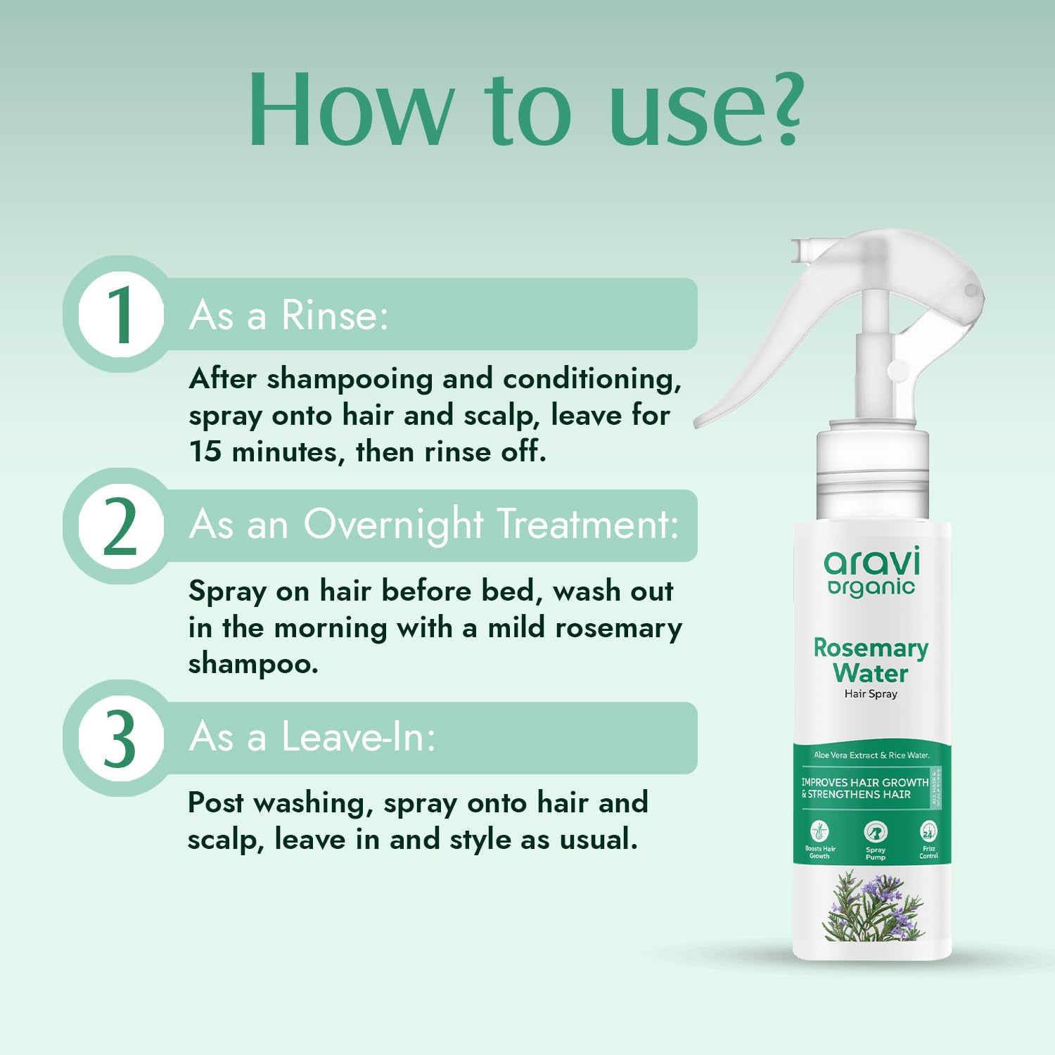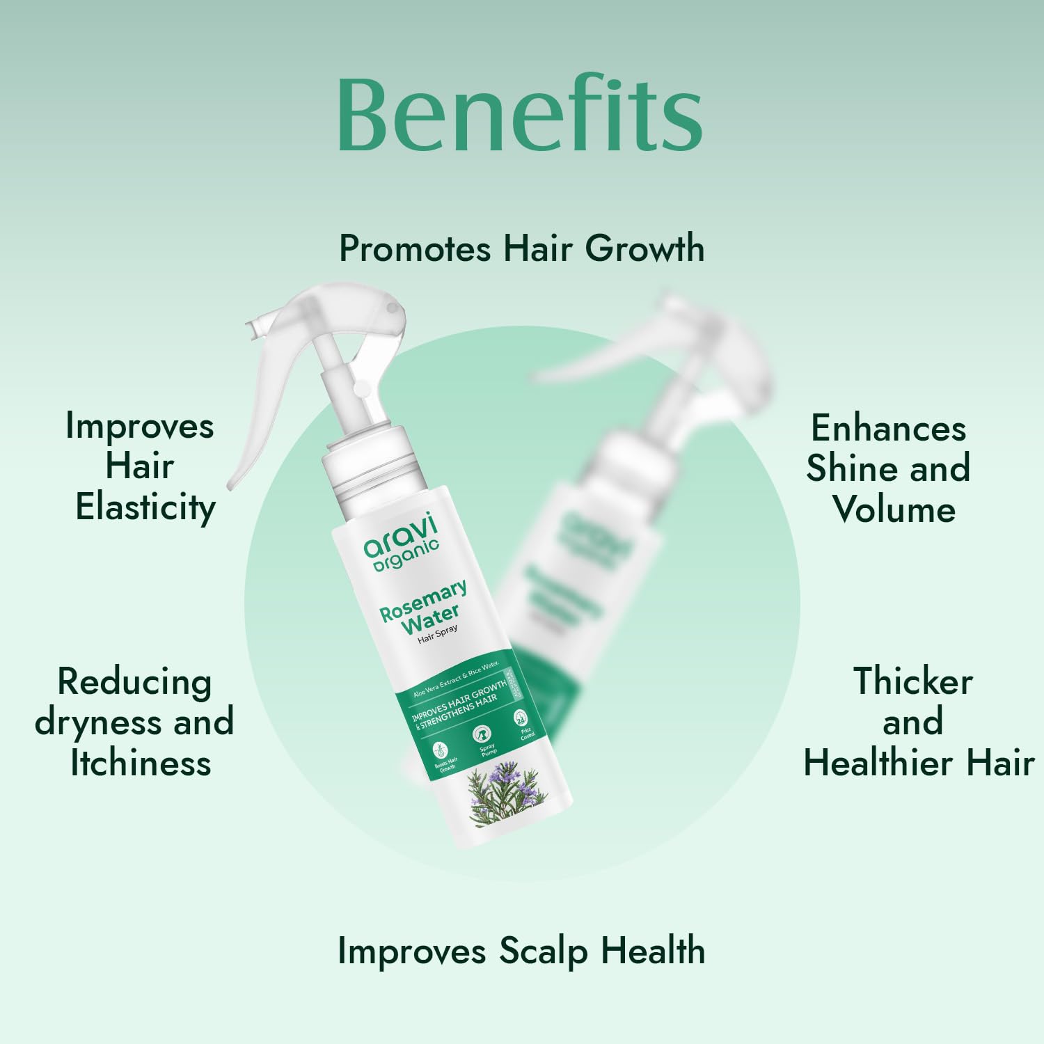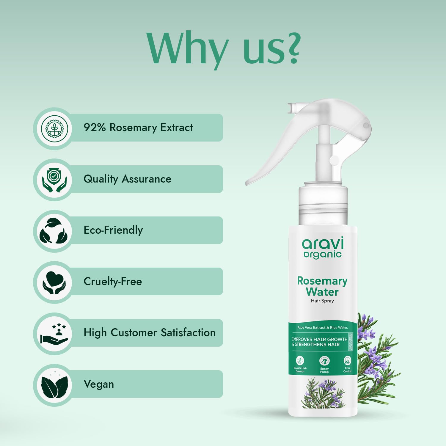 HomeHealth & PersonalHair CareHair Protect SerumAravi Organic Rosemary Water Hair Spray For Hair Growth Reducing Hair Fall Strengthens Hair & Breakage Promotes Healthy Follicles and Thicker Hair For Men & Women Fragrance Free 100 ml