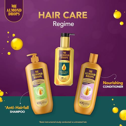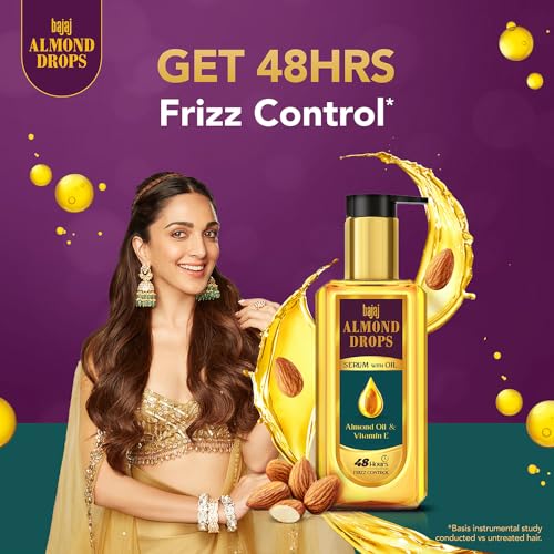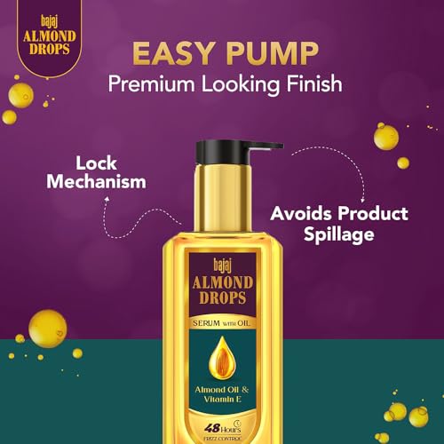 Embrace 48-hour frizz-free control and indulge in the nourishing power of Bajaj Almond Drops Hair Serum. This serum tames unruly frizzy hair and provides essential care and nourishment with the goodness of almond oil. It's your secret to achieving stronger shinier hair proven to reduce hair fall by 2X while boosting shine through its 6X Vitamin E infusion. Experience hair that's 3 times softer and smoother maintaining its beauty for up to 48 hours. The Vitamin E protection it offers shields your hair from external damage ensuring lasting resilience and health allowing you to enjoy the benefits of strong beautiful hair without the hassle of frizz or flyaways.