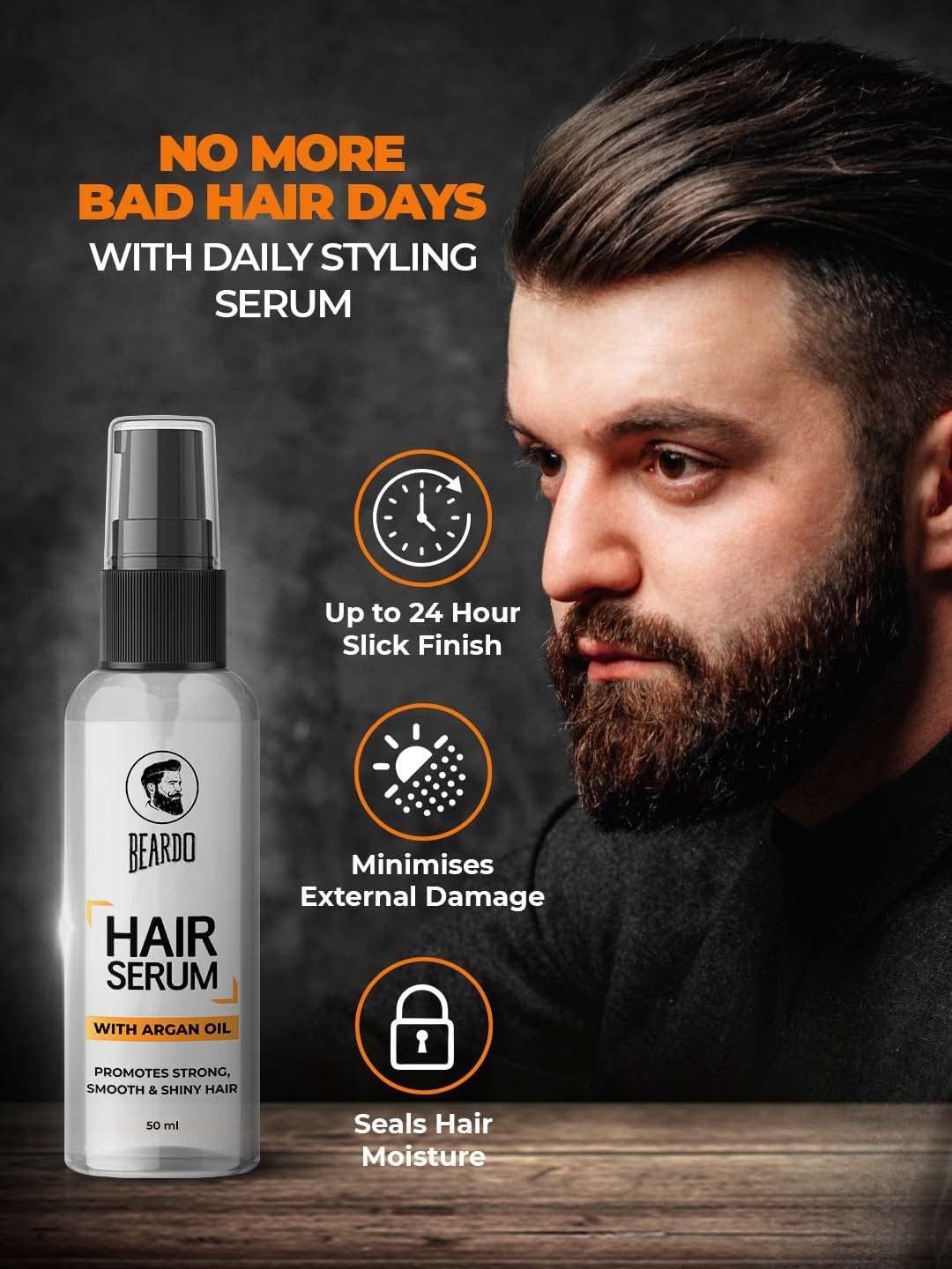 Beardo Hair Serum 50 ml | Serum for men | Serum for hair smoothing | Argan Oil & Almond Oil | Adds Shine | Daily use| For All Hair Types | Frizz free hair