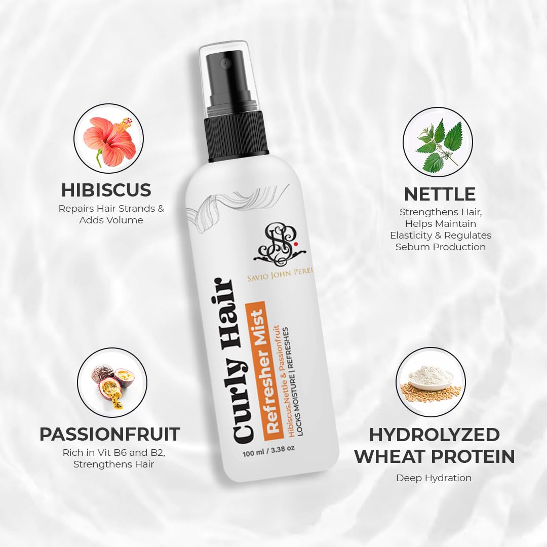 Curly Hair Refresher Mist | Curly hair products | Instantly Refreshes Curls | Adds Hydration | Hair care | Hair style tools | Minimizes Frizz By Savio John Pereira - 100 ml (200)