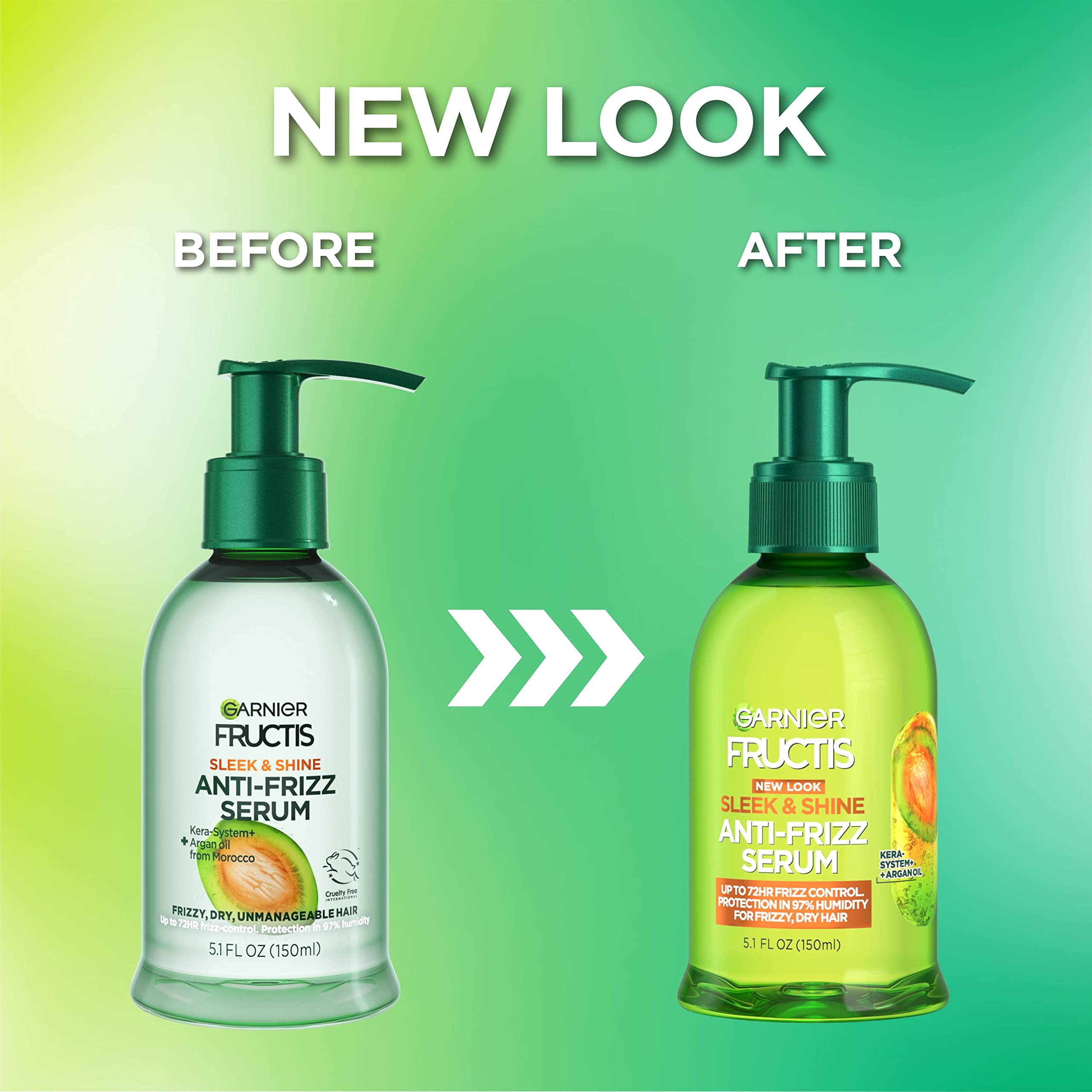 Fructis Sleek & Shine Anti-Frizz Serum with Argan Oil from Morocco soaks into frizzy dry unmanageable hair for lasting smoothness and shine. ⢠Get instant sleek with Sleek and Shine shampoo conditioner and leave-in treatment ⢠Hair serum with Argan Oil from Morocco ⢠Soaks into frizzy dry unmanageable hair for lasting smoothness and shine ⢠Long lasting frizz control *With shampoo conditioner and leave-in treatment. Its more than Argan Oil⦠its a fortifying smoother for long lasting frizz control. Paraben-free Sleek & Shine shampoo conditioner and leave-in treatments help smooth each strand for long lasting frizz control. Even in 97% humidity.* *With shampoo conditioner and leave-in treatment. After using Sleek & Shine shampoo and conditioner dispense 1 pump of serum or as much as needed for your hair type into your hands. Apply uniformly to damp or dry hair. Do not rinse. For the sleekest look style using brush and blow dryer.