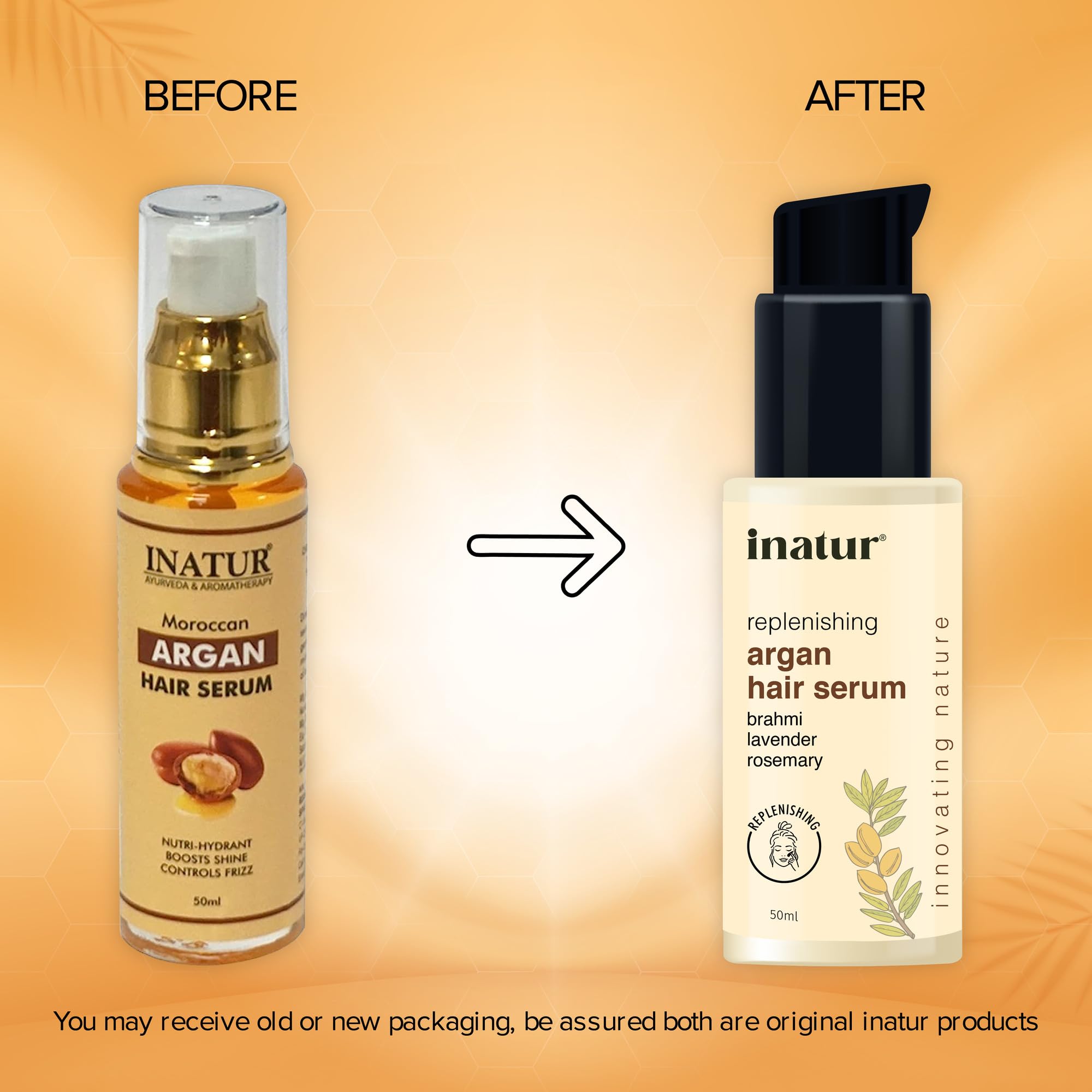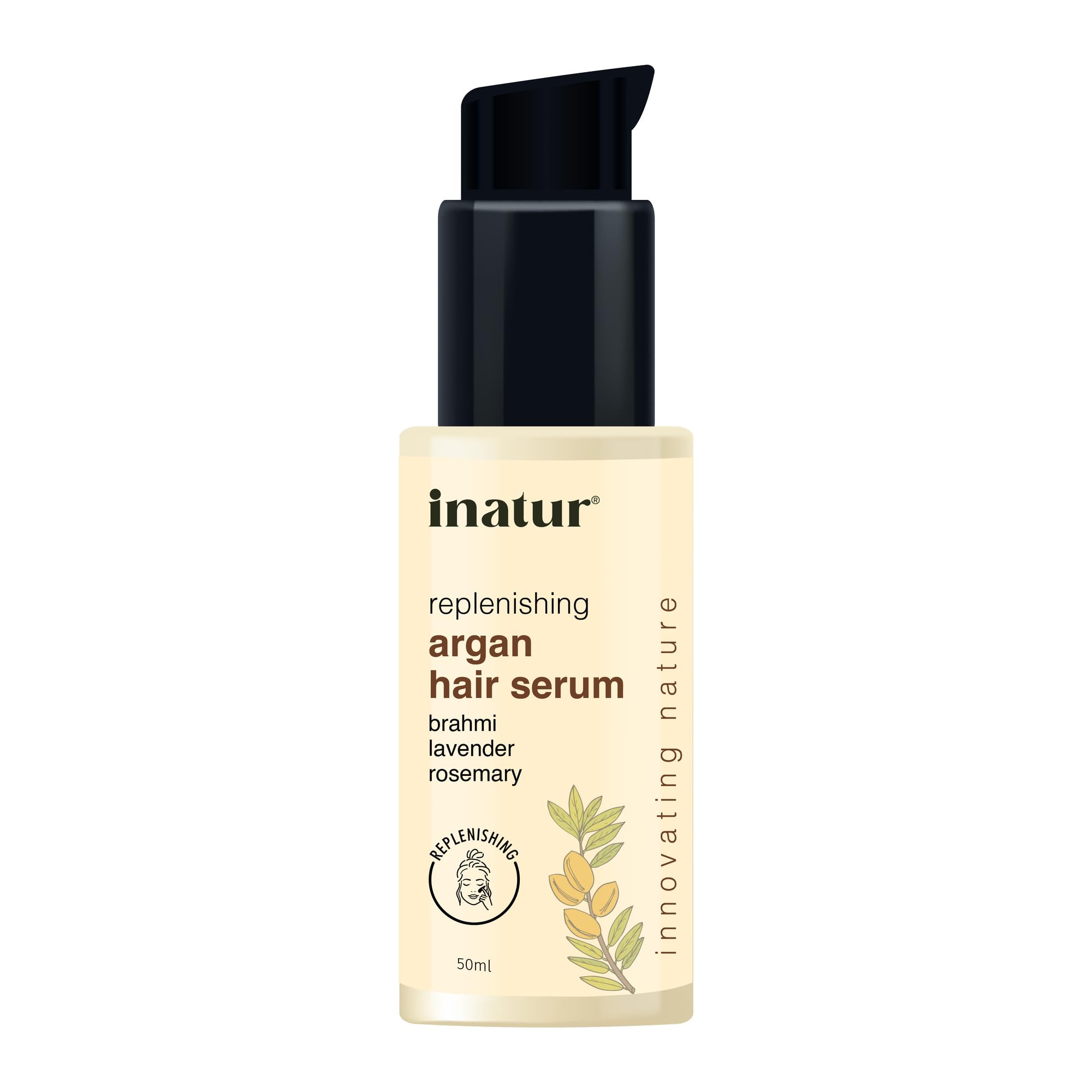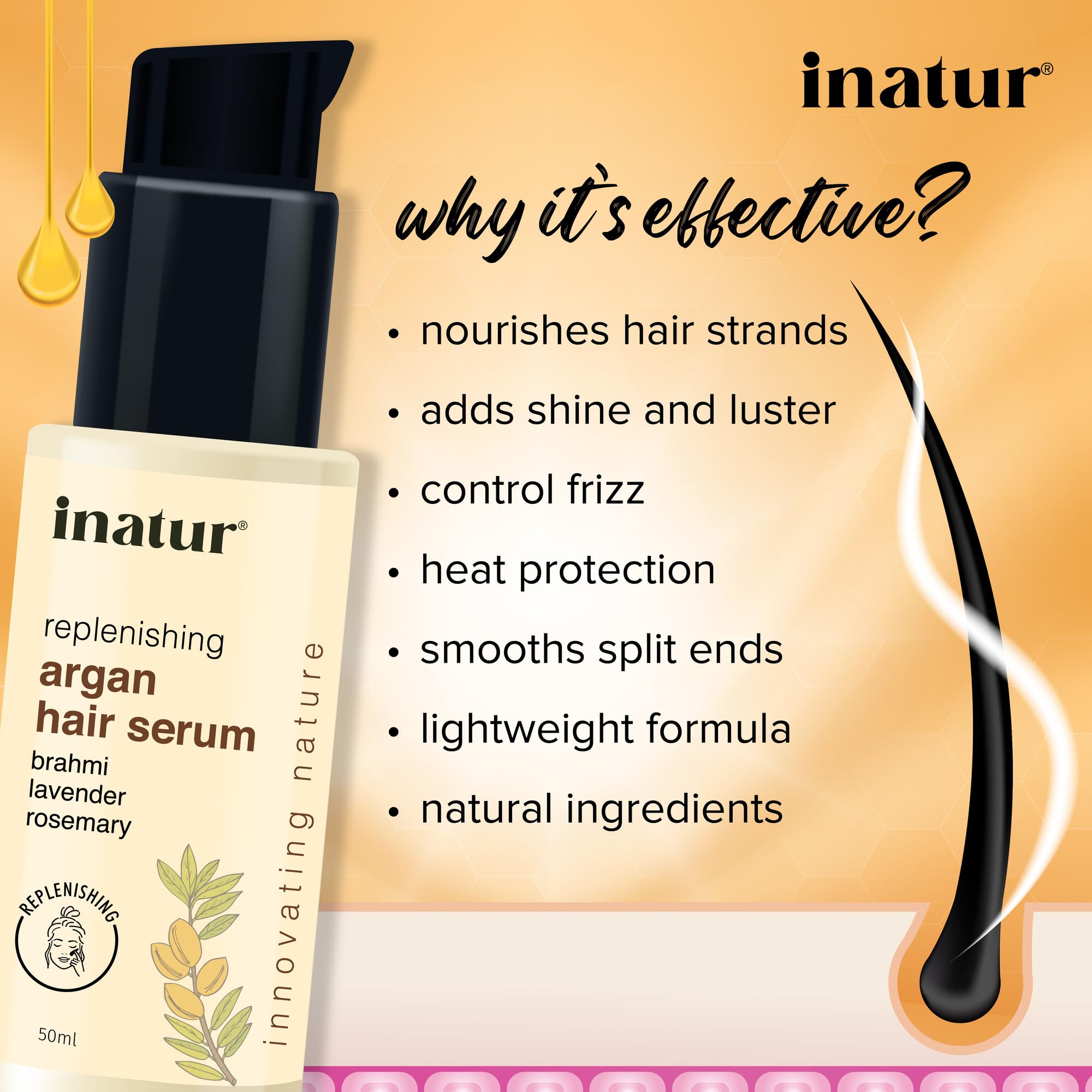 Inatur Argan Hair Serum - For Silky Frizz-Free Hair| With Argan Oil Brahmi Lavender and Rosemary| Sulfate-Free Natural Vegan Cruelty-Free| Multi-Benefit Hair Care| 50ml