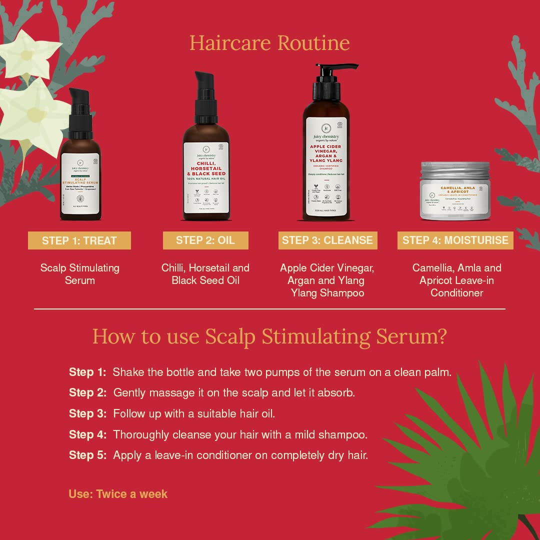 HomeHealth & PersonalHair CareHair Protect SerumJuicy Chemistry Scalp Stimulating Serum 10 ml Hair Growth Serum for Women & Men - Certified Natural with Grapeseed & White Tea for Hair fall Control
