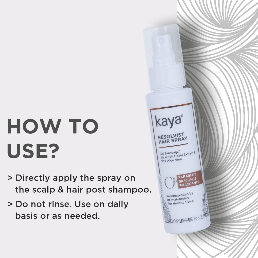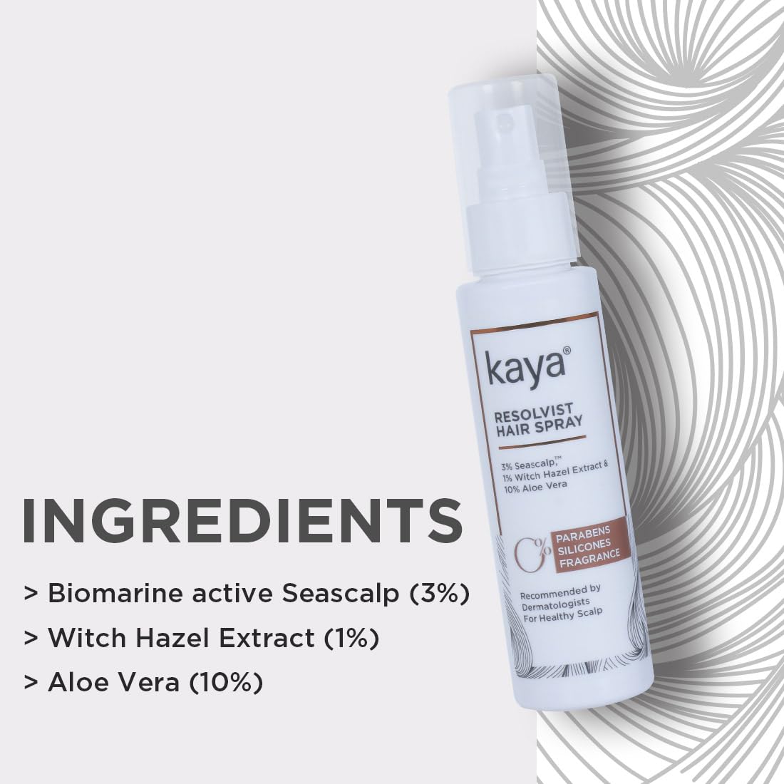 Kaya Resolvist Hair Spray 100ml | Seascalp Witch Hazel Extract & Aloevera Helps Control Dandruff Dry Itchy and Flaky Scalp