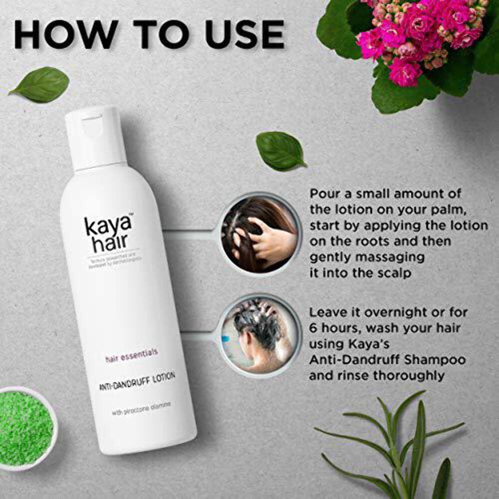 • Kaya Anti-Dandruff Hair Lotion is an overnight lotion enriched with Piroctine Olamine to soothe an itchy and irritated scalp