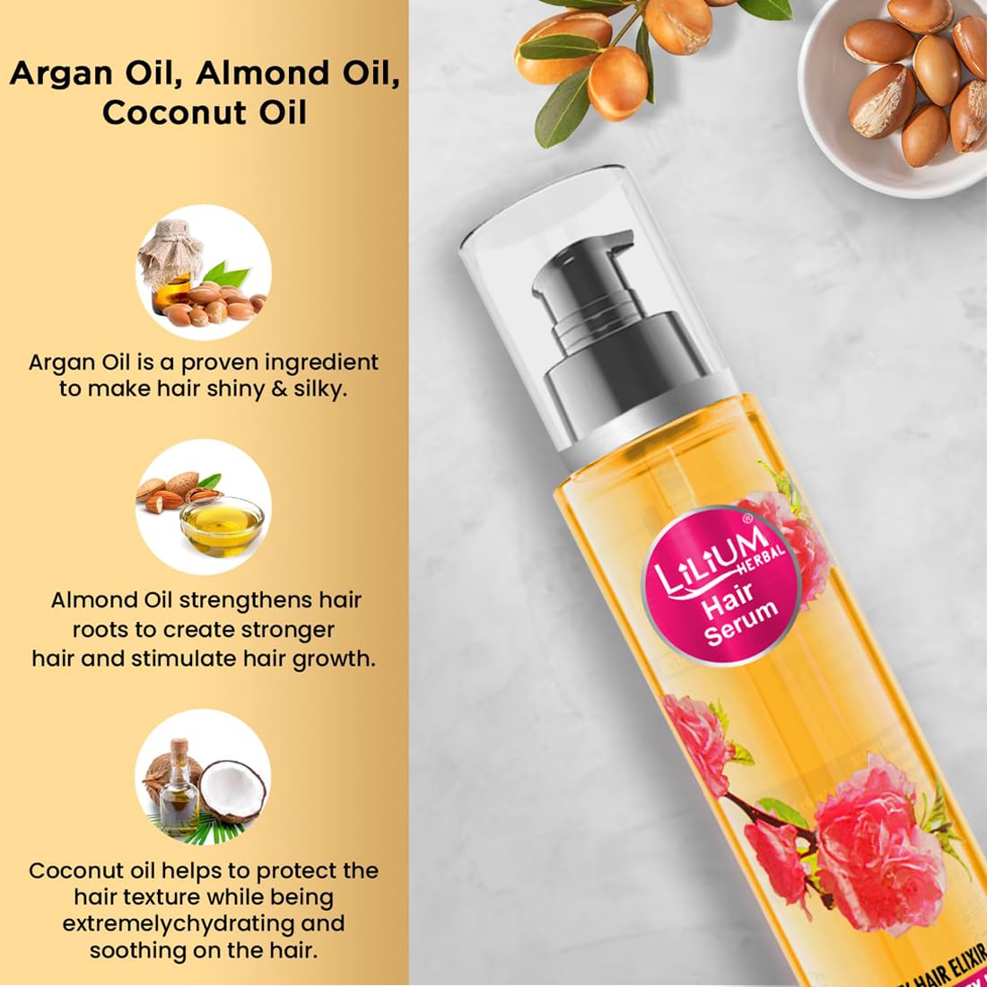 Introducing Lilium Hair Serum the ultimate solution for stunning frizz-free locks. Enriched with nourishing botanicals and advanced technology our lightweight formula hydrates strengthens and adds brilliant shine to your hair. Say hello to sleek silky-smooth strands that turn heads wherever you go. Unlock the secret to effortlessly beautiful hair with our Hair Serum. Harnessing the power of nature’s finest ingredients including argan oil and vitamin E our serum revitalizes and rejuvenates your hair restoring its natural strength and resilience.