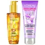 L'Oreal Paris Serum Protection and Shine For Dry Flyaway & Frizzy Hair With 6 Rare Flower Oils Extraordinary Oil 100 mlTransform and tame your unruly locks with our enriching Extraordinary Oil Serum! L'Oreal Extraordinary hair serum is designed to smooth and nourish dry frizzy and unruly hair. Enriched with a blend of 6 rare flower oils: Lotus Chamomile Flax Tiare Rose and Sunflower; hair is left looking smooth shiny and weightless. Ultra versatile and luxurious; it can be used as a pre-shampoo treatment heat protector styling serum and over-night deep conditioning treatment!L'Oreal Paris Hyaluron Moisture 72H Hydra Filling Night Cream | Leave In Hair Cream with Hyaluronic Acid | For Dry & Dehydrated Hair | Adds Shine & bounce 180mlDiscover an exclusive night ritual enriched with hyaluronic acid to instantly infuse hair with deep hydration and seal cuticles overnight without any weigh down. Wake up to hair that is soft detangled and frizz controlled. First of its kind overnight technology created in the L'Oreal L**********s gives you 4x more moisture in just 1 night keeping your hair hydrated shiny and bouncy. Key Ingredient: Hyaluronic acid for hair which retains 1000 times its weight in water and is an essential ingredient to maintain the natural moisture barrier of your scalp and strands. This potent hydrating active weightlessly coats hair to keep it feeling hydrated for up to 72 hours and helps hair look visibly plumped bouncy and shiny. USAGE INSTRUCTION: Apply to hair lengths and tips and leave overnight. No need to rinse no residue and no weigh down the next morning. Washing your hair is optional.