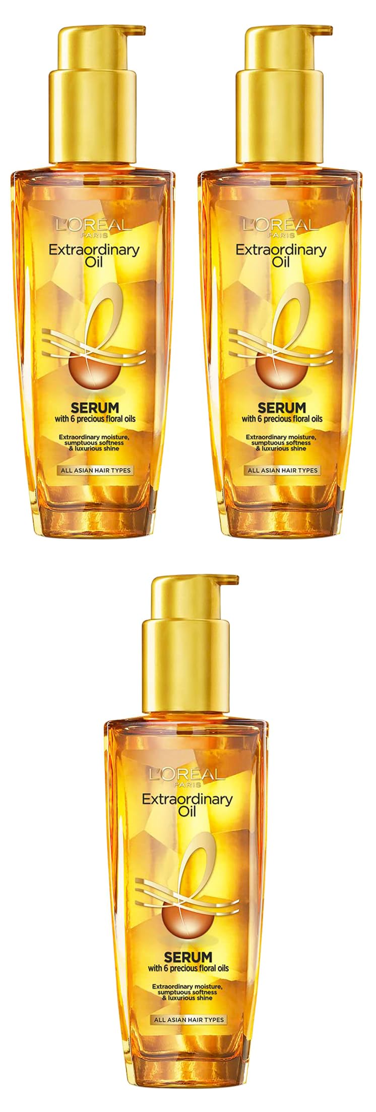 L'Oreal Paris Serum Protection and Shine For Dry Flyaway & Frizzy Hair With 6 Rare Flower Oils Extraordinary Oil 100ml (Pack of 3)