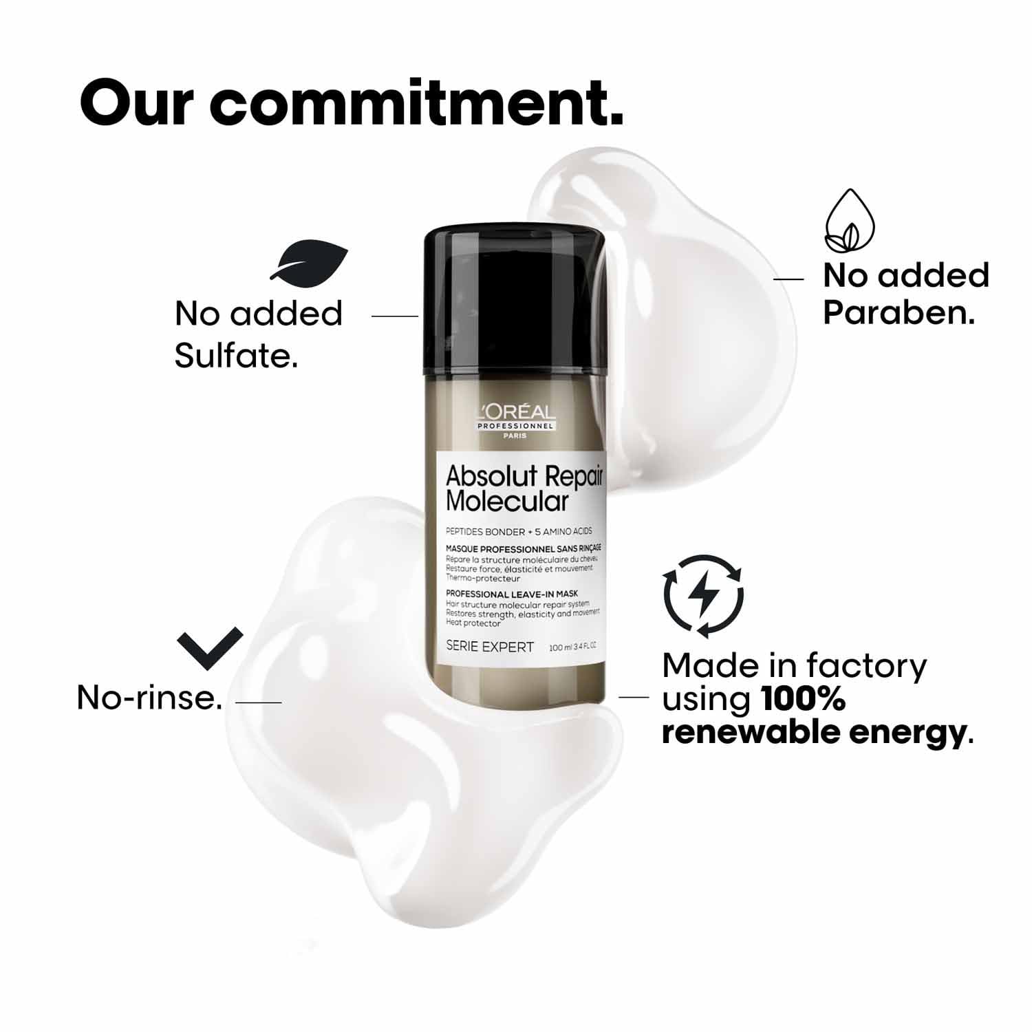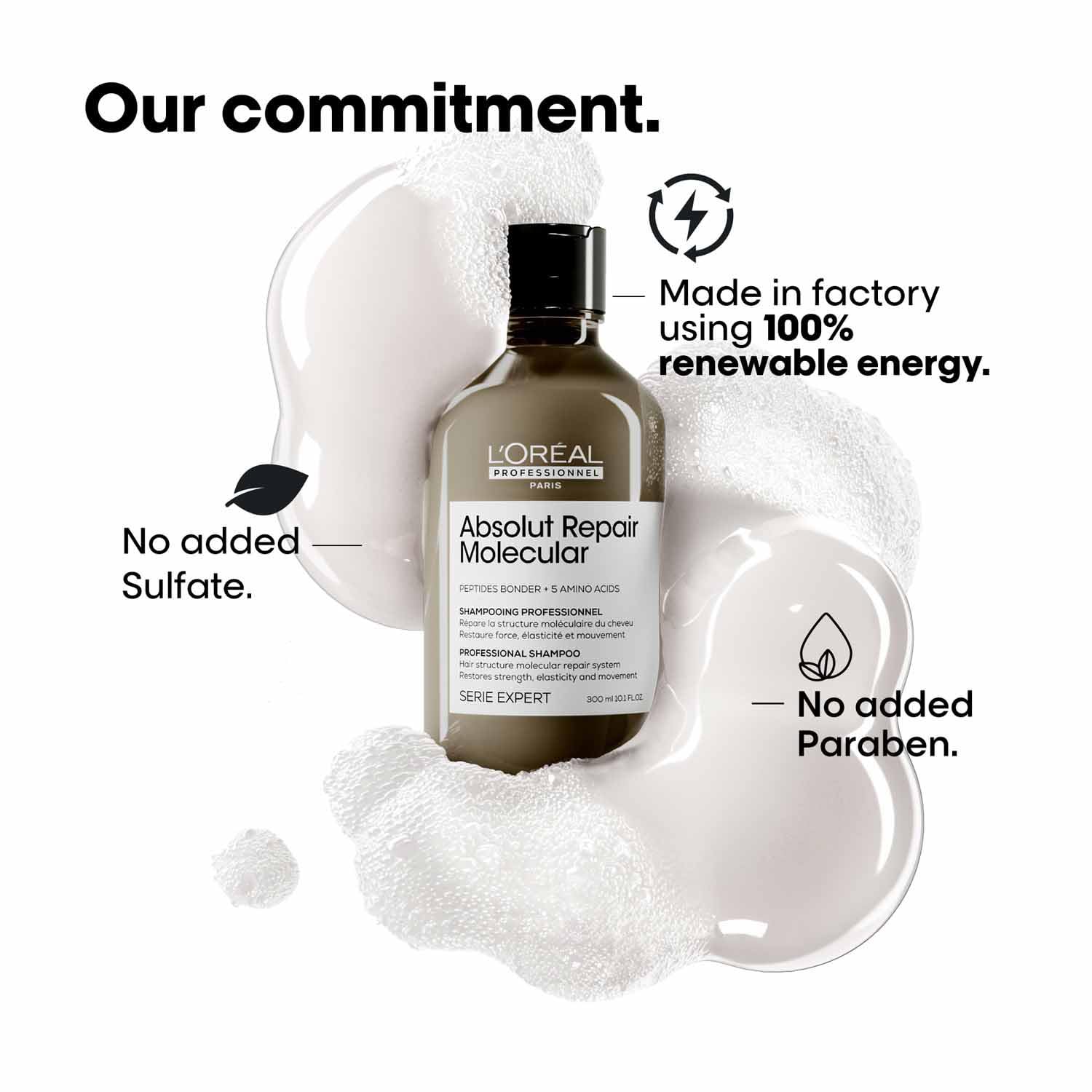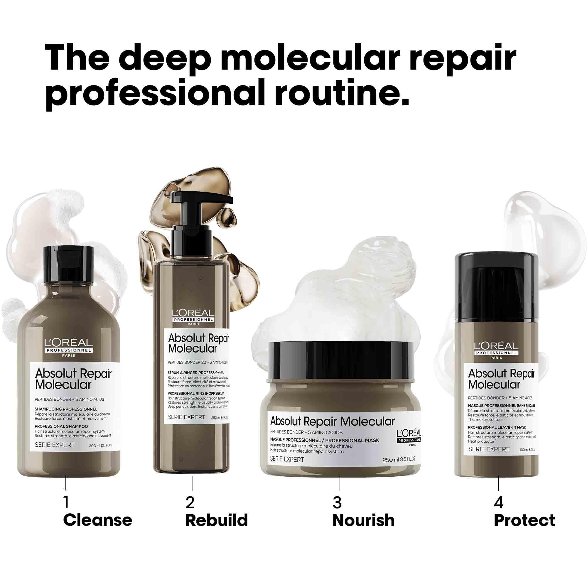 L'Oreal Professionnel Absolut Repair Molecular Sulfate-Free Deep Repairing Shampoo Rinse-Off Serum & Leave-In Mask Combo for Damaged Hair