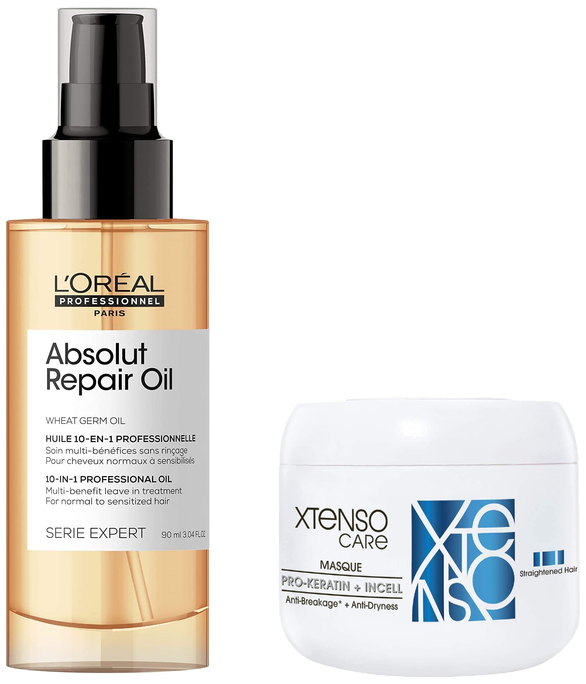 L'OREAL PROFESSIONNEL PARIS Absolut Repair Oil 10-In-1 Multi-Benefit Leave-In Hair Serum 90Ml & L'Oreal Professionnel Xtenso Care Masque 196 Gm For Straightened Hair