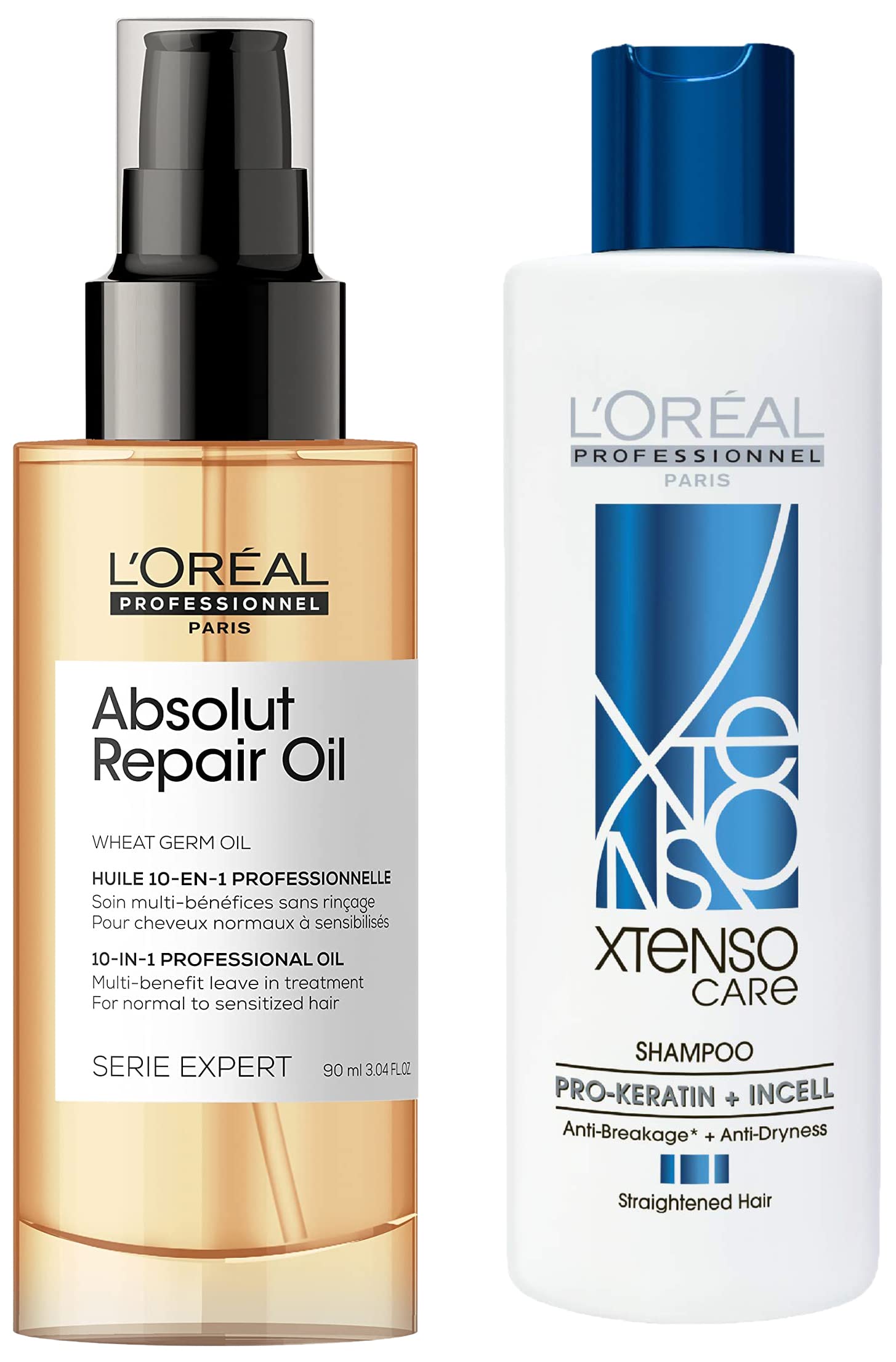 L'OREAL PROFESSIONNEL PARIS Absolut Repair Oil 10-In-1 Multi-Benefit Leave-In Hair Serum 90Ml & L'Oreal Professionnel Xtenso Care Shampoo 250 Ml For Straightened Hair