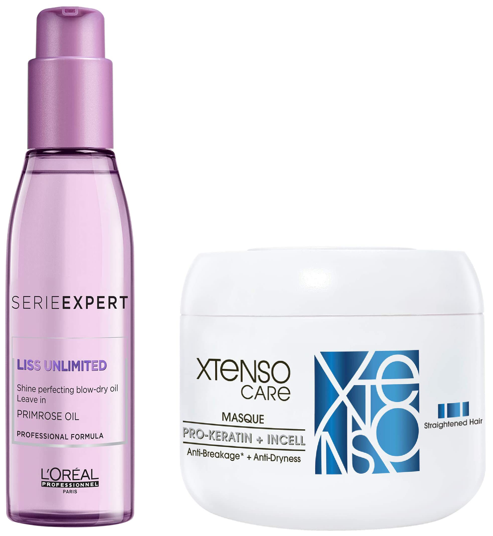 L'OREAL PROFESSIONNEL PARIS Xtenso Care Masque 196 Gm For Straightened Hair & L'Oreal Professionnel Serie Expert Liss Unlimited Blow Dry Serum 125 Ml For Frizz-Free Hair