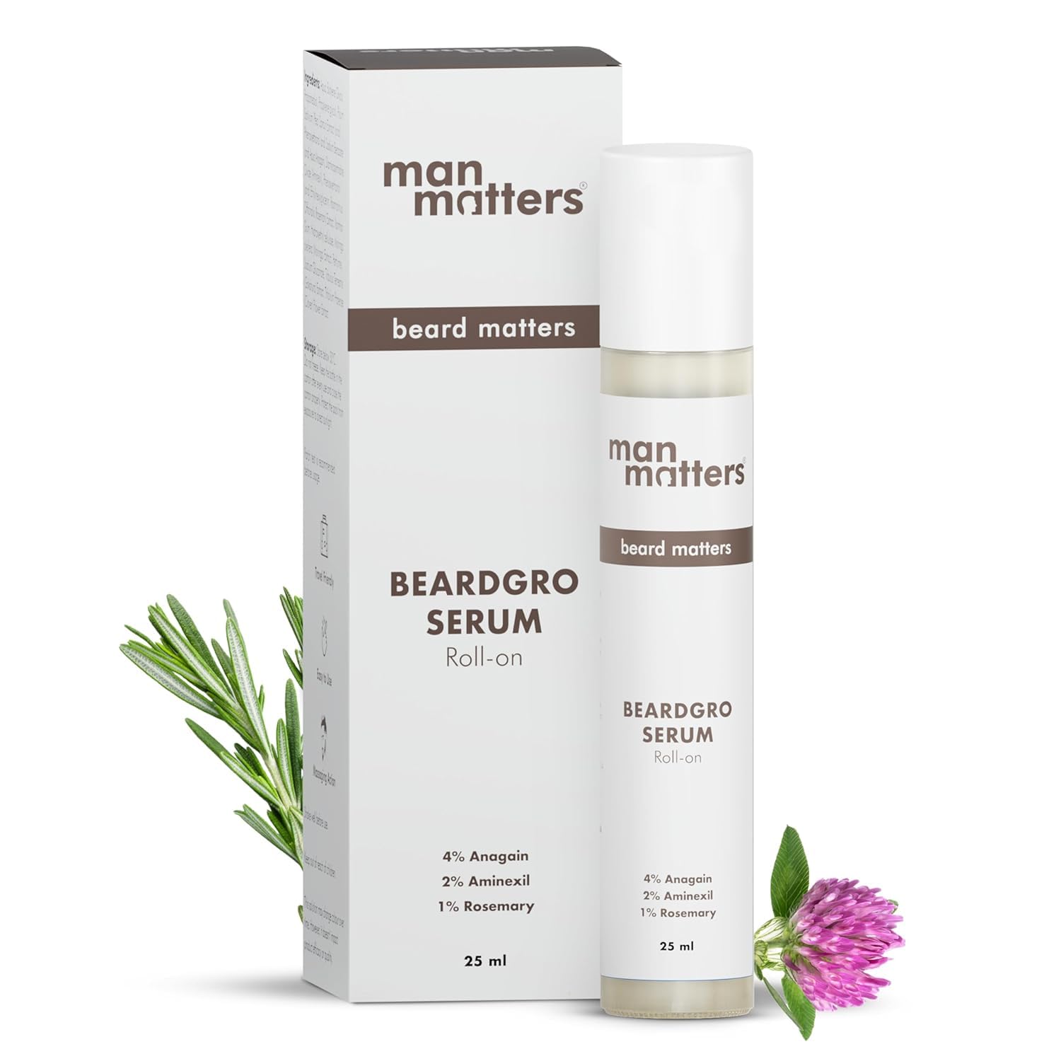Man Matters BeardGro Serum Roll On 25ml | 4% Anagain 2% Aminexil & 1% Rosemary | For Stronger Fuller & Thicker Beard | Solves Uneven & Patchy Beard | Lightweight Fast Absorption