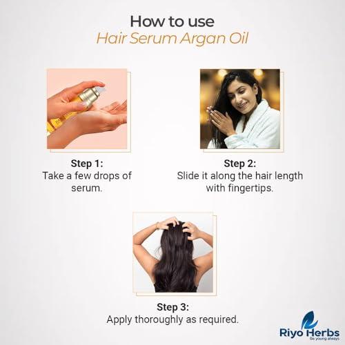 Riyoherbs Argan oil enriched hair serum helps to nourish your hair and repair damage dry hair ends giving detangled lustrous hair. recommended for all types of chemically treated hair (keratin botox smoothening coloured hair)Key IngredientsArgan Oil Sweet Almond Oil Jojoba OilWhy choose riyoherbs hair serum ?Non-sticky formula enriched with the goodness of argan oil sweet almond oil & jojoba oil.Nourishes and repairs damaged dry hair ends.Gives detangled lustrous hair that lasts all day.Specially designed for chemically treated hair ( keratin botox smoothening coloured hair)Promotes shine controls frizz moisturises scalp with natural oils.