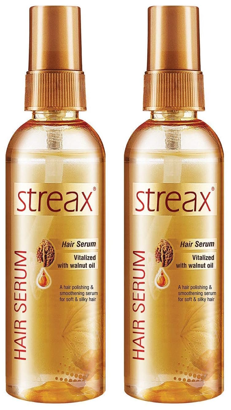 ENRICHED WITH WALNUT OIL - Streax Hair Serum is vitalized with walnut oil which gives glossy and shiny look by adding polish to every strand of hair. It is carefully crafted to form the most gentle and effective hair serum for all hair types including dry
