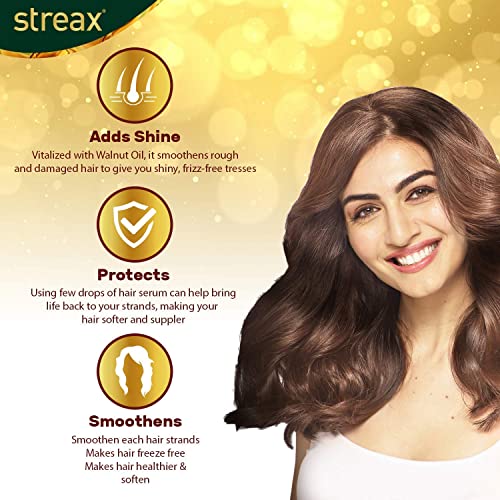 ENRICHED WITH WALNUT OIL - Streax Hair Serum is vitalized with walnut oil which gives glossy and shiny look by adding polish to every strand of hair. It is carefully crafted to form the most gentle and effective hair serum for all hair types including dry