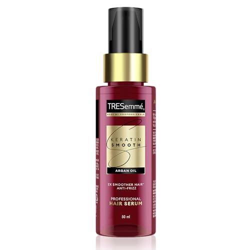 TRESemmé Keratin Smooth Hair Serum helps your hair restore its keratin leaving them visibly straight and smoother. Infused with the goodness of Camellia Oil this professional serum nourishes each strand of your hair making them silky smooth and easier to manage. This unique combination of Keratin and Camellia Oil conditions and strengthen your hair and provides them hydration and elasticity. With its dual action TRESemmé Keratin Smooth Hair Serum helps you get up to 100% smoother hair with more shine. When used together with the TRESemmé Keratin Smooth Shampoo and Conditioner this nourishing system controls frizz for as long as upto 3 days. Recommended by professionals the TRESemmé Keratin Smooth Hair Serum is especially formulated for Indian hair and is suitable for both naturally and chemically treated hair. It is also suitable for use in conjunction with any oil treatments. Suitable for both men and women. To use: Apply Keratin Smooth Shampoo to wet hair and gently massage to work into a lather. Rinse hair thoroughly. Follow with the TRESemmé Keratin Smooth conditioner for an extra boost of smoothness. Apply Tresemme Keratin Smooth Hair Serum to damp or dry hair evenly avoiding roots. Now get visibly straighter smoother hair that is easier to style. Buy now to enjoy gorgeous salon-quality smooth hair everyday without the salon price tag!