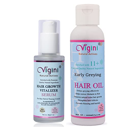 Vigini 3% Redensyl Procapil Anagain Anageline Biotin Keratin Saw Palmetto Hair Care Nourishing Growth Vitalizer Serum 30ml | Anti Grey Greying Itchy Scalp Oil 100ml | Control Hair Fall Thinning Men Women