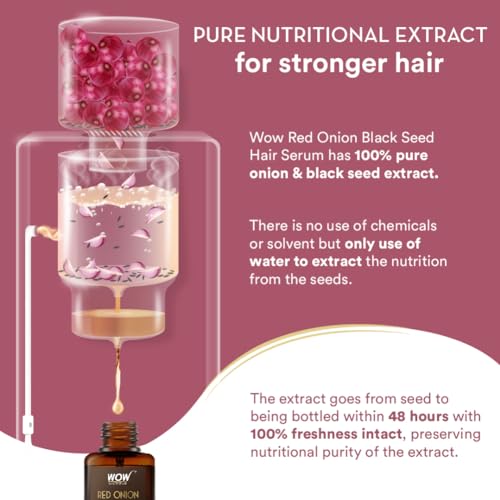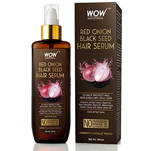 Onion hair serum is a water based hair serum has a blend of natural ingredients that aids in enhancing your hair texture and softness. It also helps to strengthen hair strands helps in hair growth reduce hair breakage and protect damaged strands. This improves hair texture and gives it a natural softness. It boosts healthy shine and smoothens rough hair. It should be used on damp washed hair to get tamed tangle-free smooth hair. Sulfate Free Onion hair serum is infused with red onion extract with strong antioxidant properties that help to revive weak strands and promote blood circulation to the roots. Black seed oil rich in fatty acids helps to form a protective barrier on hair. Watercress extract a conditioning active helps to restore moisture and check breakage. Indian Cress supports in shielding strands from UV damage and saw palmetto seed oil helps to improve hair structure. Our onion hair serum is suitable for all hair types and should be used on washed slightly damp hair to get maximum manageability and shine. Shine & Softness Boosting Hair Serum Say hello to smooth lush glossy hair with WOW Skin Science Red Onion Black Seed Oil Hair Serum. Help revive your dull rough strands with this hair serum. Red onion extract and black seed oil help to protect strands from breakage. Use this serum post hair wash to get shiny manageable hair.