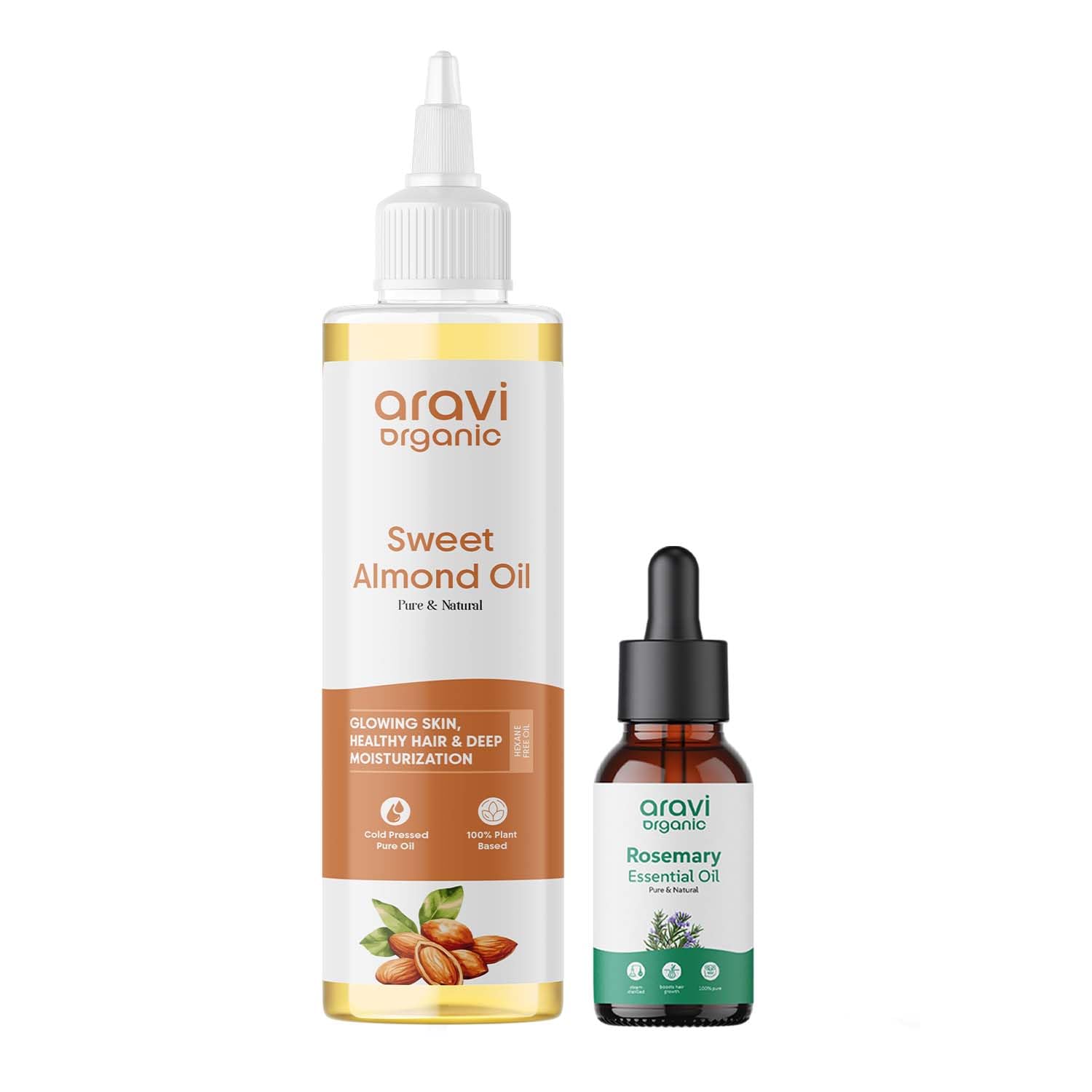Aravi Organic Almond Oil & Rosemary Essential Oil Combo 100% Pure Natural Cold-Pressed Oils for Hair Skin and Aromatherapy