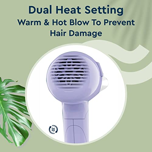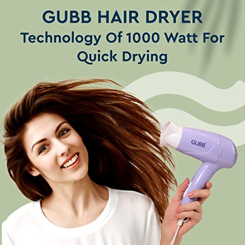 GUBB Hair Dryer For Men & Women | Professional Blow Dryer With Foldable Handle and Detachable Nozzle | 2 Heat Settings | 1000 Watts With Overheat Protection, Purple