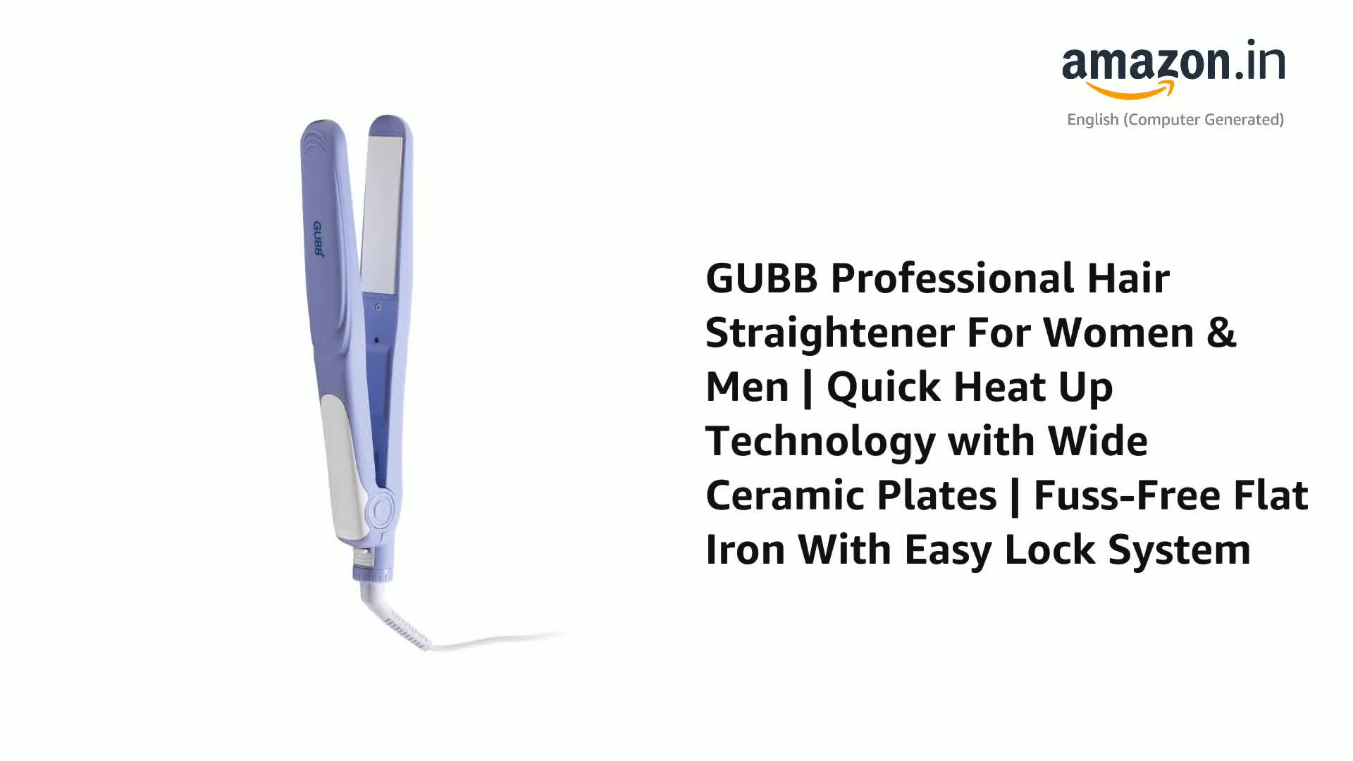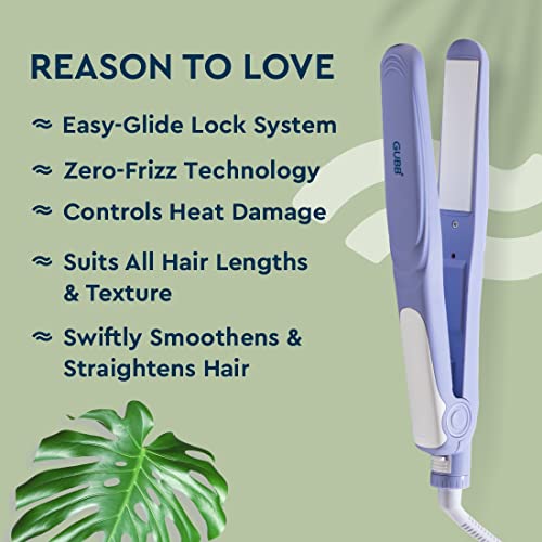 GUBB Professional Hair Straightener For Women & Men | Quick Heat Up Technology with Wide Ceramic Plates | Fuss-Free Flat Iron With Easy Lock System (Purple)
