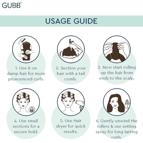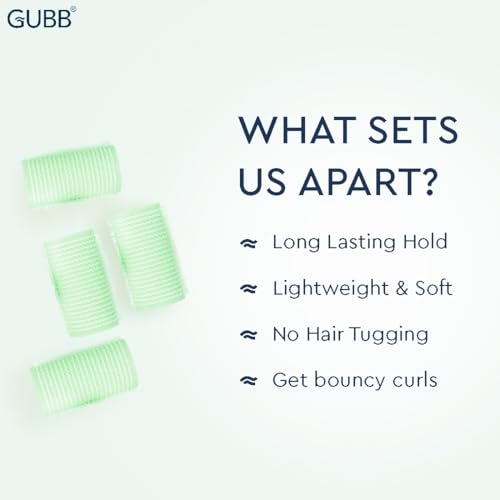 GUBB Hair Roller Curlers Large - Set of 6 Green Hair Curlers - Easy-to-Use Hair Rollers for Effortless Styling and Gorgeous Curls - Suitable for All Hair Types - Lightweight and Portable Hair Curling Tools for Salon-Worthy Results at Home