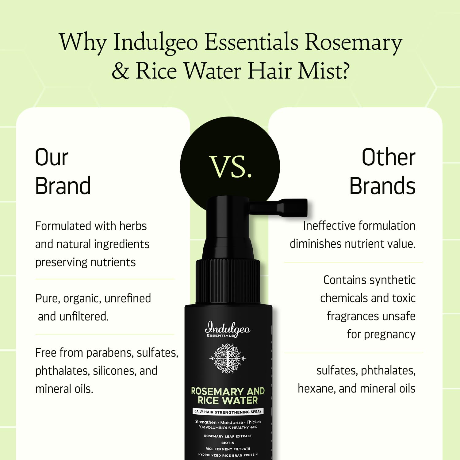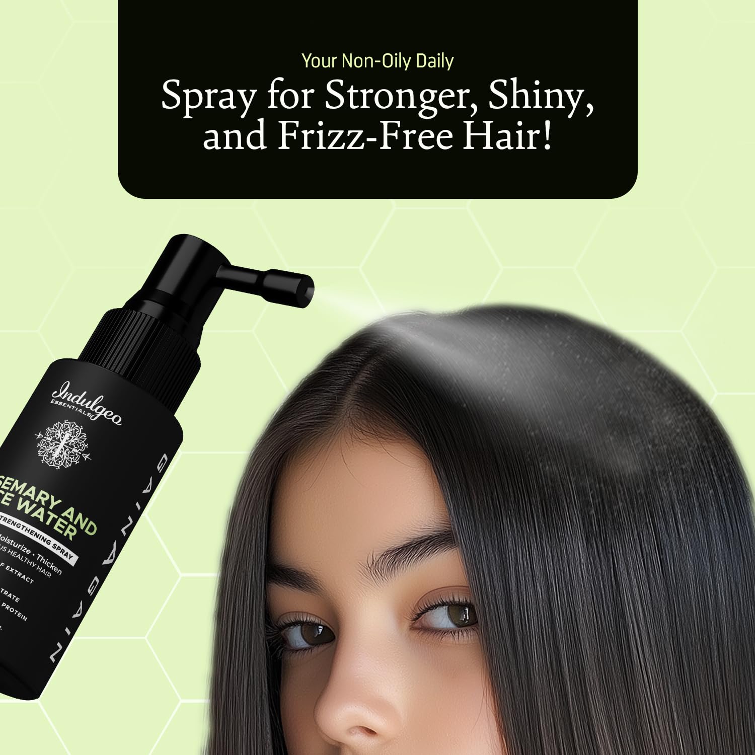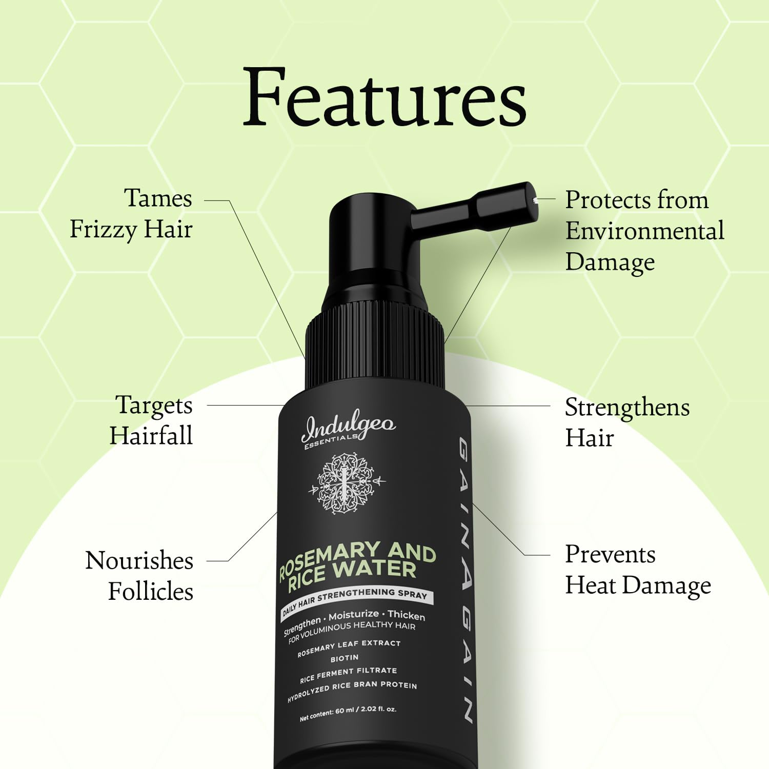 Indulgeo Essentials Rosemary & Rice Water Hair Growth Spray Mist (60ml) | Strengthen Moisturize Detangles Hair Shine Thicker & Healthier Hair