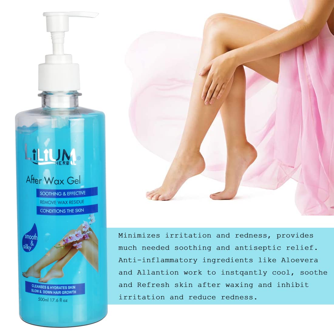Good choice India provides new brand products. Lilium After Wax Gel Minimizes irritation and redness provides much needed soothing and antiseptic relief. Anti-inflammatory ingredients like Aloe-Vera and Allantoin work to instantly coolsoothe and refresh skin after waxing and inhibit irritation and reduce redness.