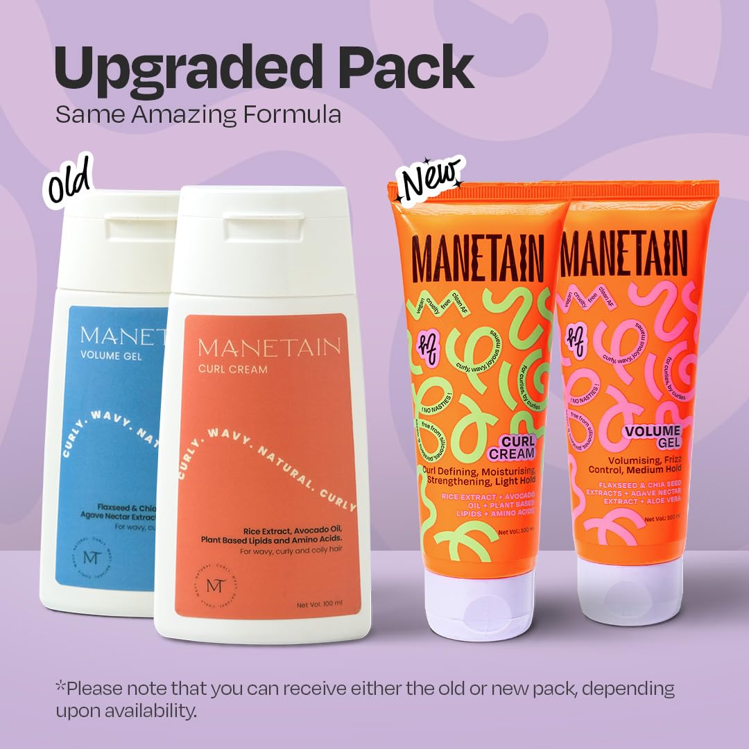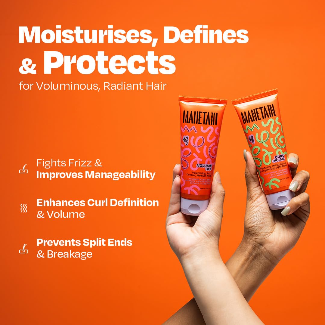 MANETAIN Volumizing Curl Cream 100ml & Hair Stylingel 100ml for Defined Curls | Hydrating Anti-Frizz & Long-Lasting Hold for Wavy Curly Hair | Natural Ingredients Vegan & Cruelty-Free