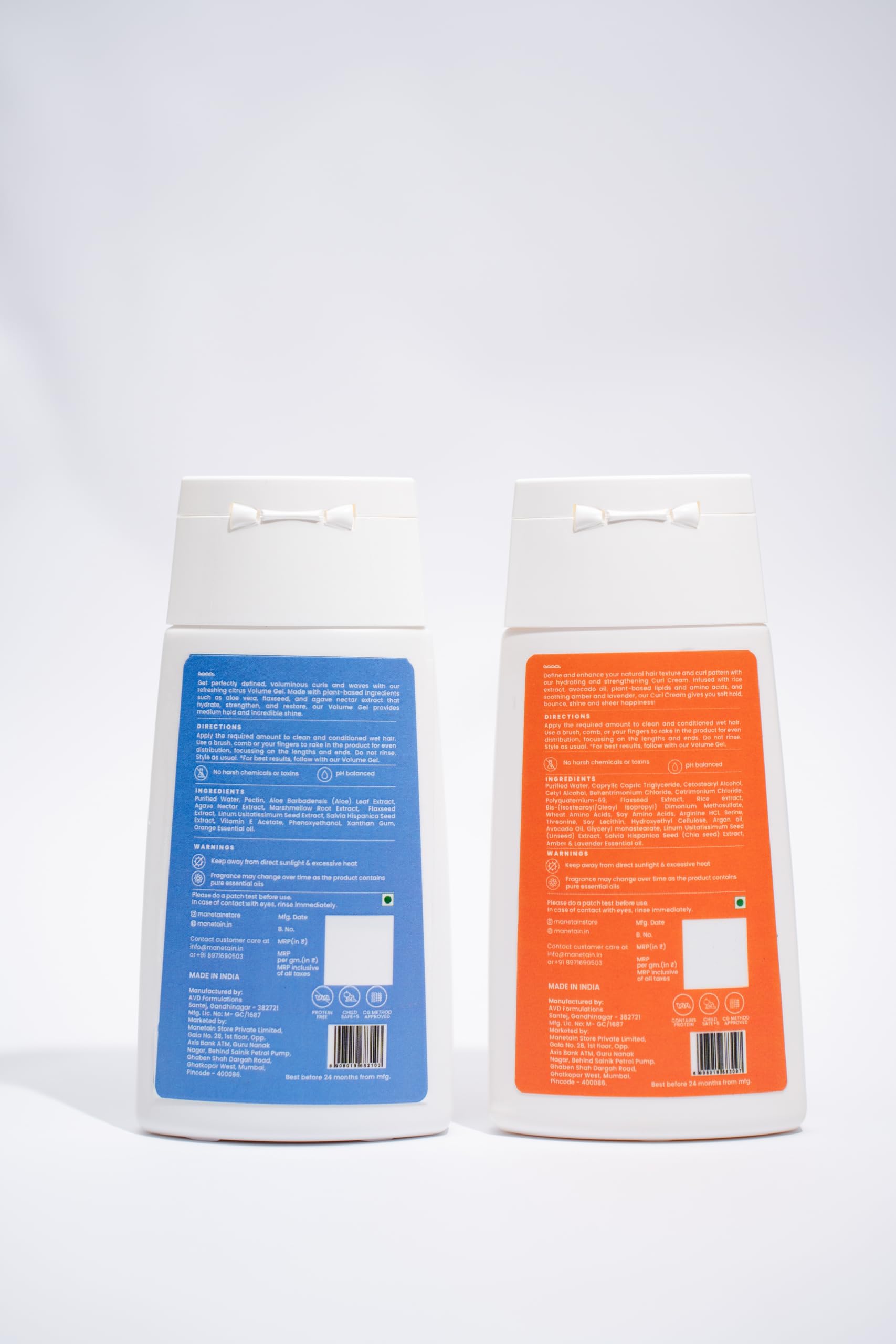 VOLUMIZE & DEFINE YOUR CURLS INSTANTLY Achieve bouncy defined curls with our Curl Cream and Volumeel duo enriched with rice extract and chia seed oil to boost volume and strengthen hair from root to tip.