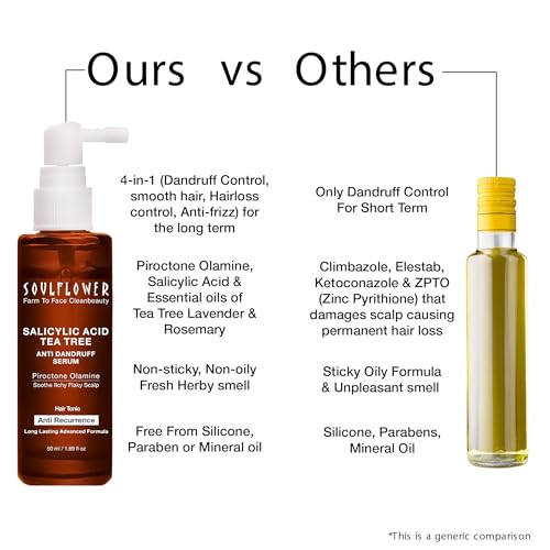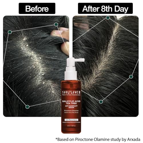 HomeHealth & PersonalHair CareHair StylingSoulflower Anti Dandruff Hair Serum with Piroctone Olamine, 2% Salicylic Acid & Rosemary Essential Oil for Hair Growth, Anti Hair Fall, Frizz Control Lotion for Men & Women for All Hair Types | 50ml