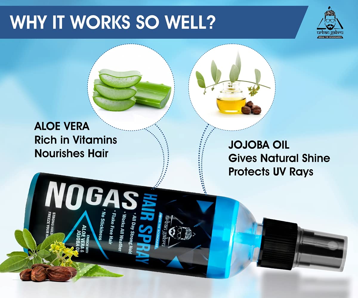 If you are looking for a hair spray that walks the talk Urbangabru's No Gas Hair Spray is the product for you. It contains 100% spray and is infused with 100% natural ingredients like Jojoba Oil and Aloe Vera. Unlike other offerings in the market this hair spray works all through the day all-year-round irrespective of the season. It promises flake-free hair while nourishing it too. Get your hands on this No Gas Hair Spray and style the way you want!