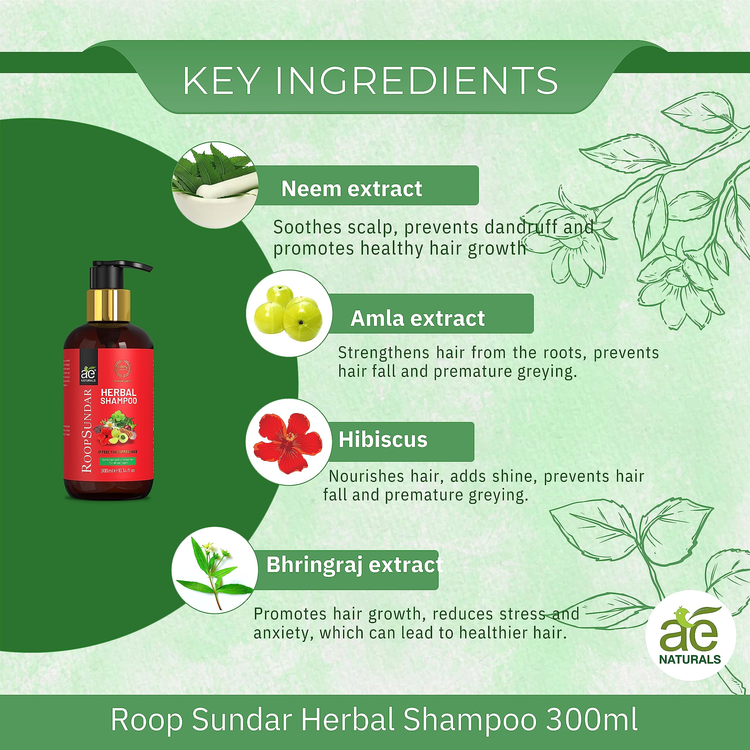 AE Naturals Roop Sundar Herbal Shampoo - 300ml for Vibrant Healthy Hair