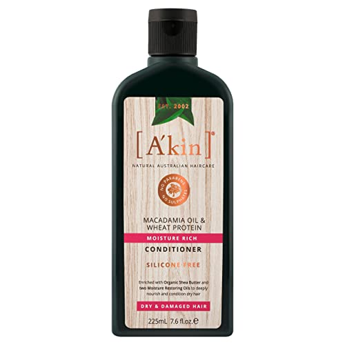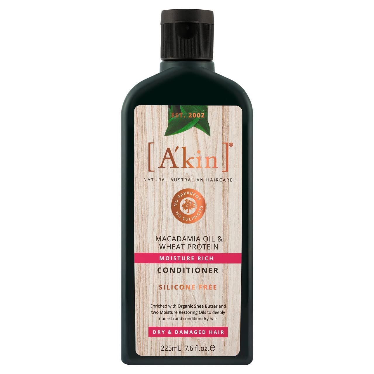 A'kin Macadamia & Wheat Protein Moisture Rich Conditioner, Free From Parabens, Sulfates and Silicones, 225 ml