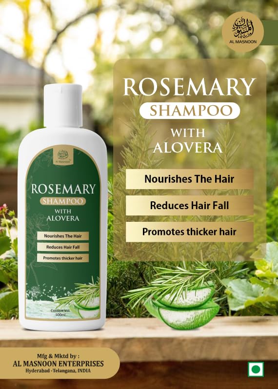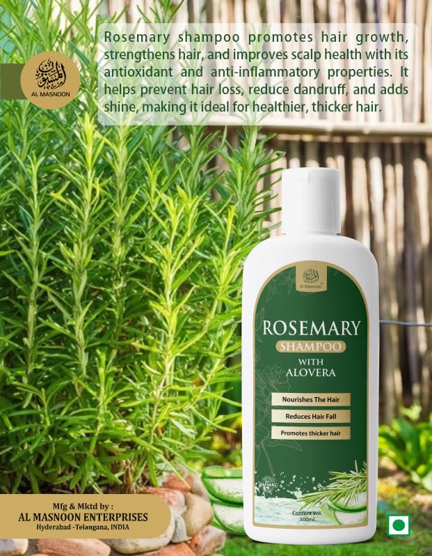 Transform your hair care routine with Al Masnoon Rosemary Shampoo with Aloe Vera a nourishing blend designed to revitalize your hair and combat hair fall. Infused with the natural power of Rosemary and the hydrating benefits of Aloe Vera this shampoo deeply nourishes the scalp strengthens hair strands and promotes healthier shinier locks. Its gentle formula is perfect for daily use and suitable for all hair types providing a holistic solution to hair fall and hair health concerns. Encased in a 500ml bottle this shampoo is your go-to choice for resilient and lustrous hair.