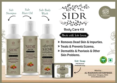 AL MASNOON ENTERPRISES sidr kit....sidr body wash 200ml ...sidr shampoo 200ml ..sidr soap. Cleanses dust dirt polluted and other impurities from face Exfoliates skin; removes blackheads whiteheads and dead skin cells Smooth soft and smooth skin's surface after use A person with any skin type can use it for facial Helps lighten skin tone improves elasticity of the skin and maintains natural glow Helpful to prevent skin problems and give you a even out skin tone