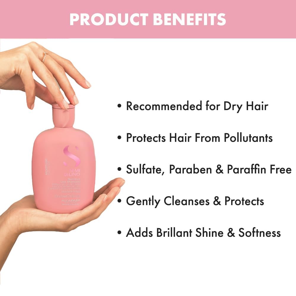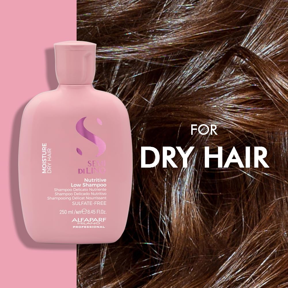 ALFAPARF MILANO Professional Moisture Nutritive Shampoo For Dry & Frizzy Hair - Sufate Paraben And Paraffin Free Treated Hair With Vitamin E Repairs Frizzy Hair (250Ml)