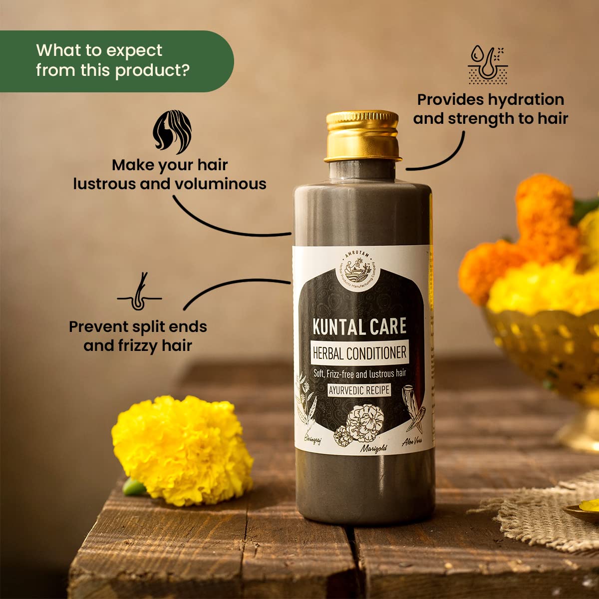 Amrutam Kuntal Care Herbal Conditioner is an ayurvedic concoction infused with potent herbs and ingredients that make your hair lustrous, voluminous, strong and frizz-free from the first wash itself.