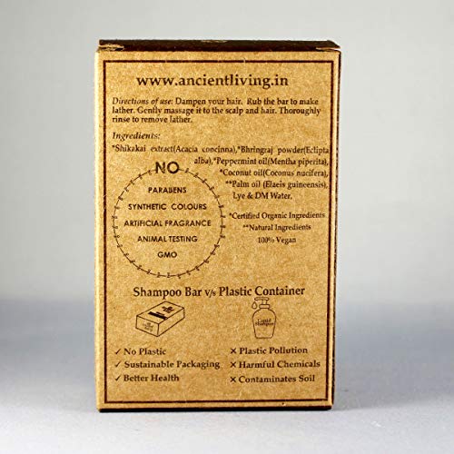 Ancient Living Shikakai Bhringraj Shampoo Bar gently cleanses out impurities.It contains ingredients such shikakai and bhringraj which have been traditionally known for their hair strengthening properties. It is a storehouse of vitamins such as E C and A along with other nourishing oils. Peppermint essential oil gets rid of dandruff and reactivates your senses with its minty aroma. Coconut oil strengthens and repairs your hair whereas palm oil deeply nourishes your hair giving you beautiful lustrous locks