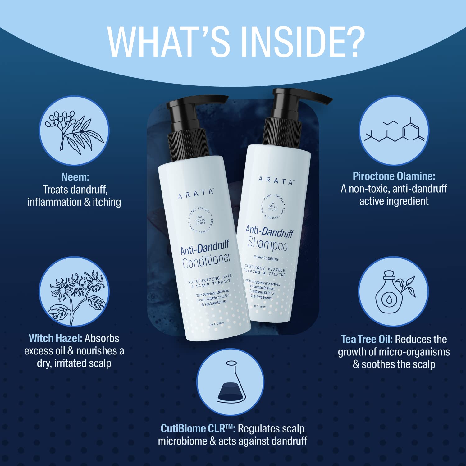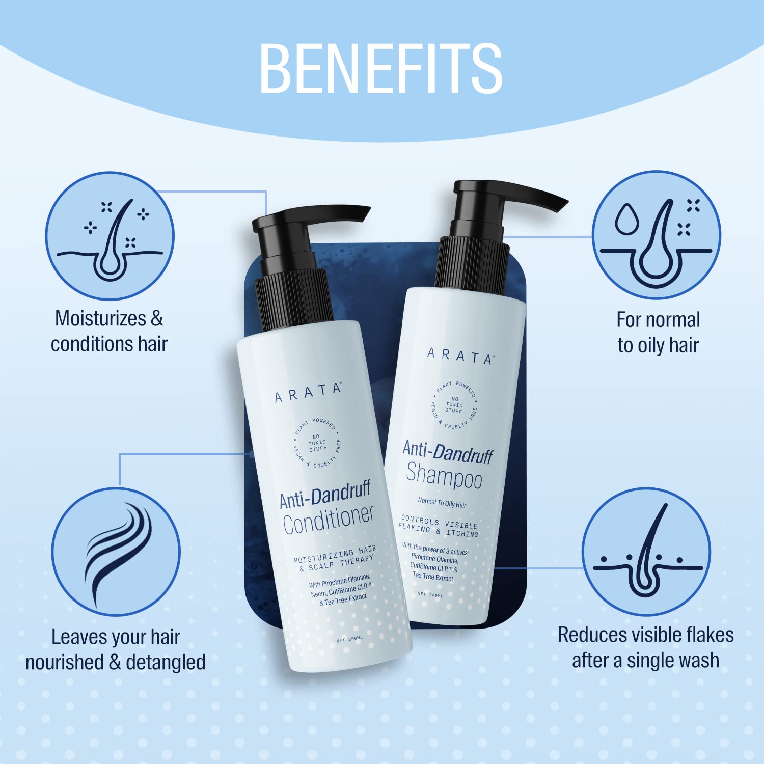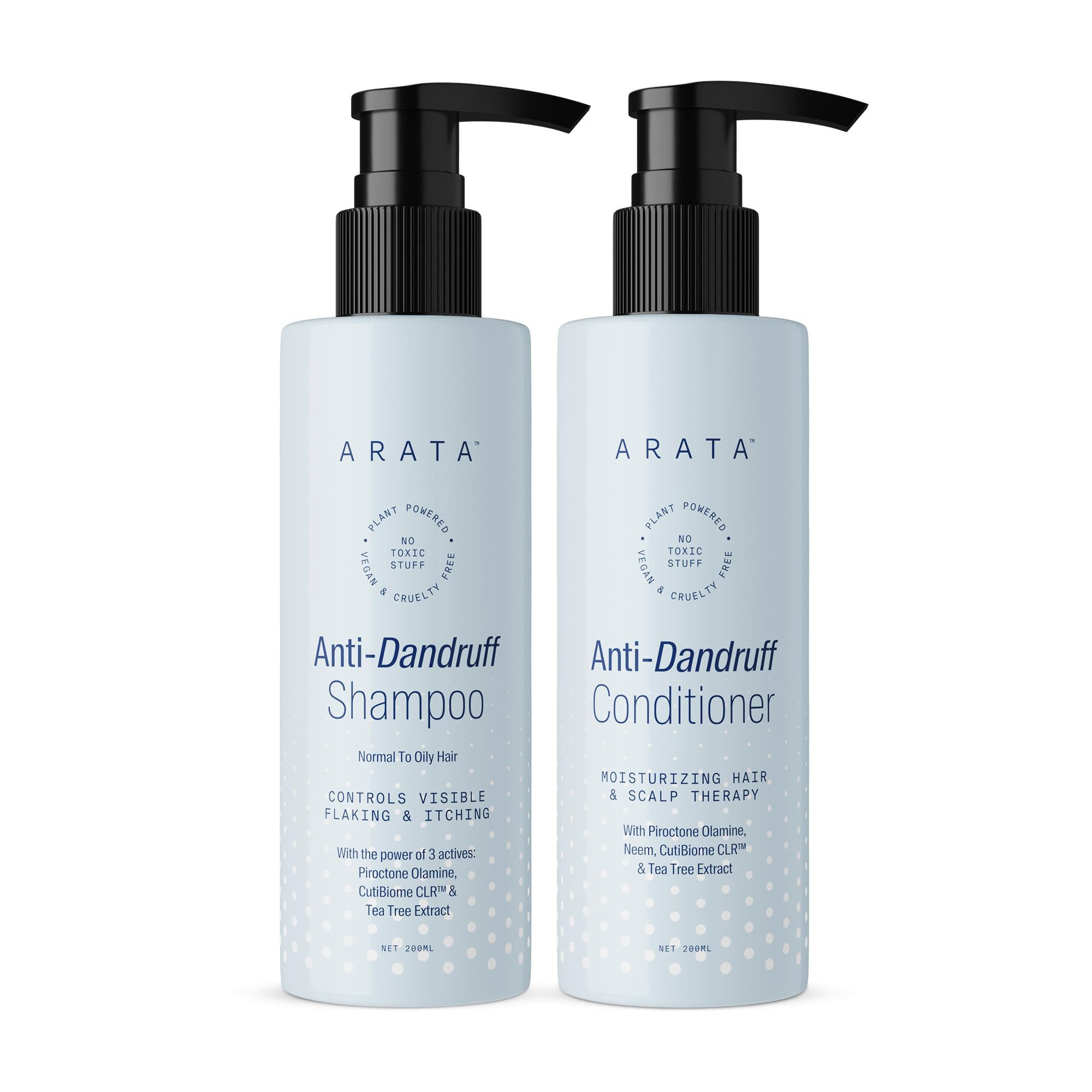 Arata Anti Dandruff Detox Duo For Normal To Oily Hair | Anti Dandruff Shampoo (200 ML) And Conditioner (200 ML) | Removes Dandruff From The First Wash | Conditions Hair