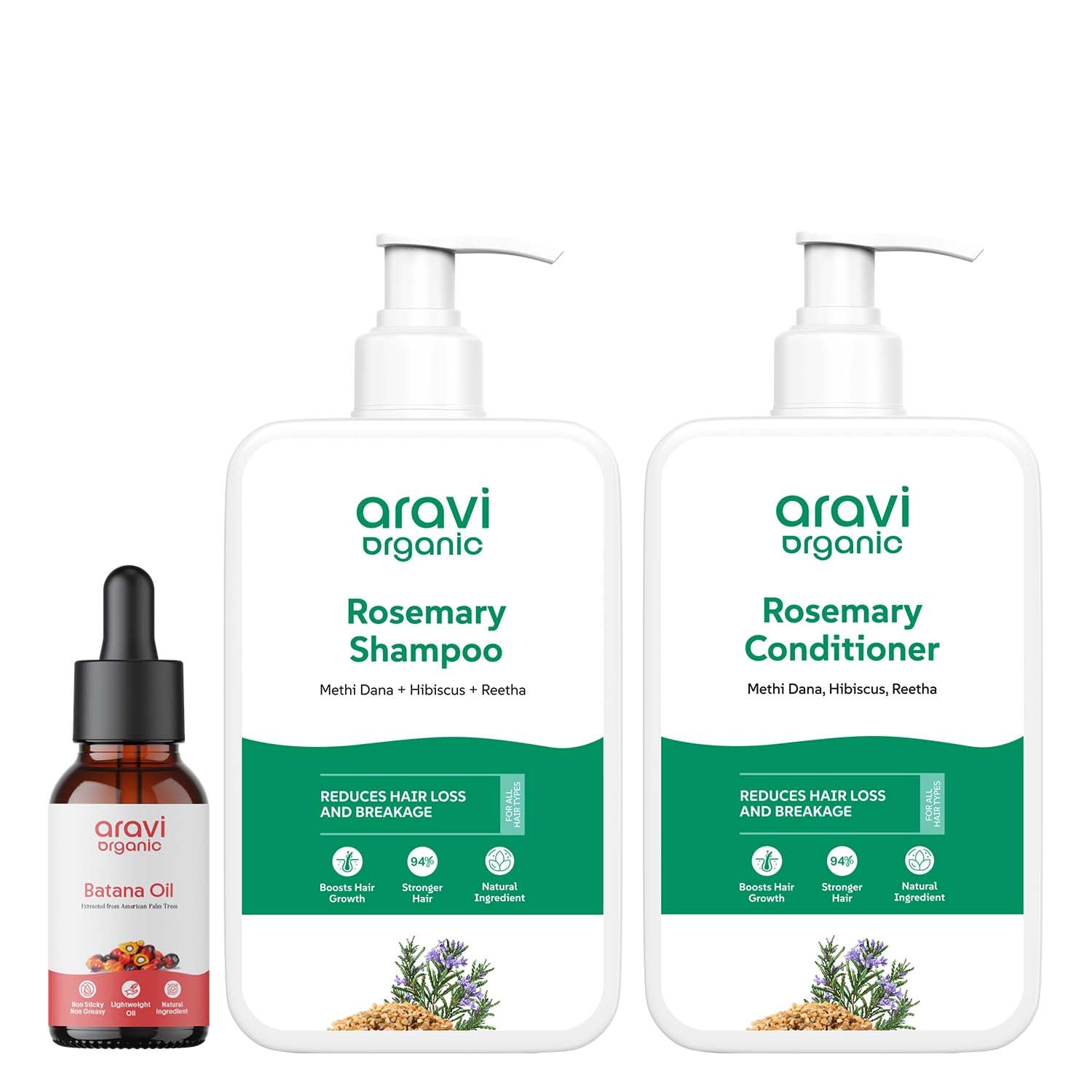 Aravi Organic Batana Hair Oil 15ml & Rosemary Shampoo & Conditioner Nourishing Hair Care Set for Growth Strength & Hydration
