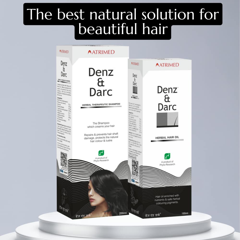 Denz and Darc Shampoo gives you healthy looking and strong hair against breakage and makes your hair more dark and natural. Improves the hair colour naturally by reaching the hair cortex and imparting colour. Improves hair growth by bringing back the damaged hair follicle to life. Prevents the inflammation and perifollicular fibrosis factors responsible for retarded hair growth. Denz & Darc Oil ensures complete nourishment to the hair root by providing proteins and vitamins required for hair growth by increasing blood circulation to the scalp and thus nourishing the cells responsible for keratin synthesis. It improves hair color naturally by reaching the hair cortex & imparting color.