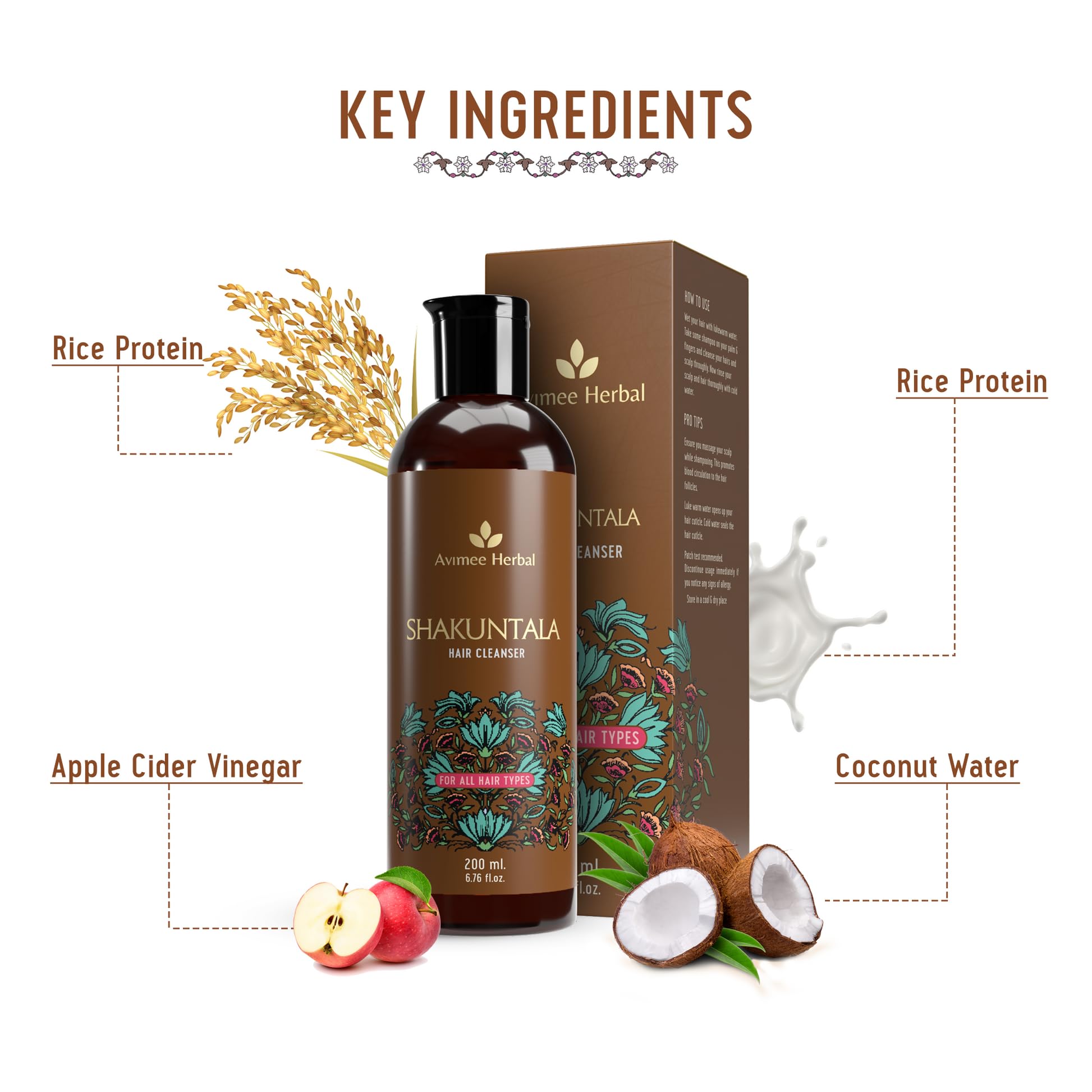 Avimee Herbal Shakuntala Hair Cleanser | For Silky Hair | With Aloe, Apple Cider, Rice & Keratin Protein | SLS & Paraben Free | 200 ml