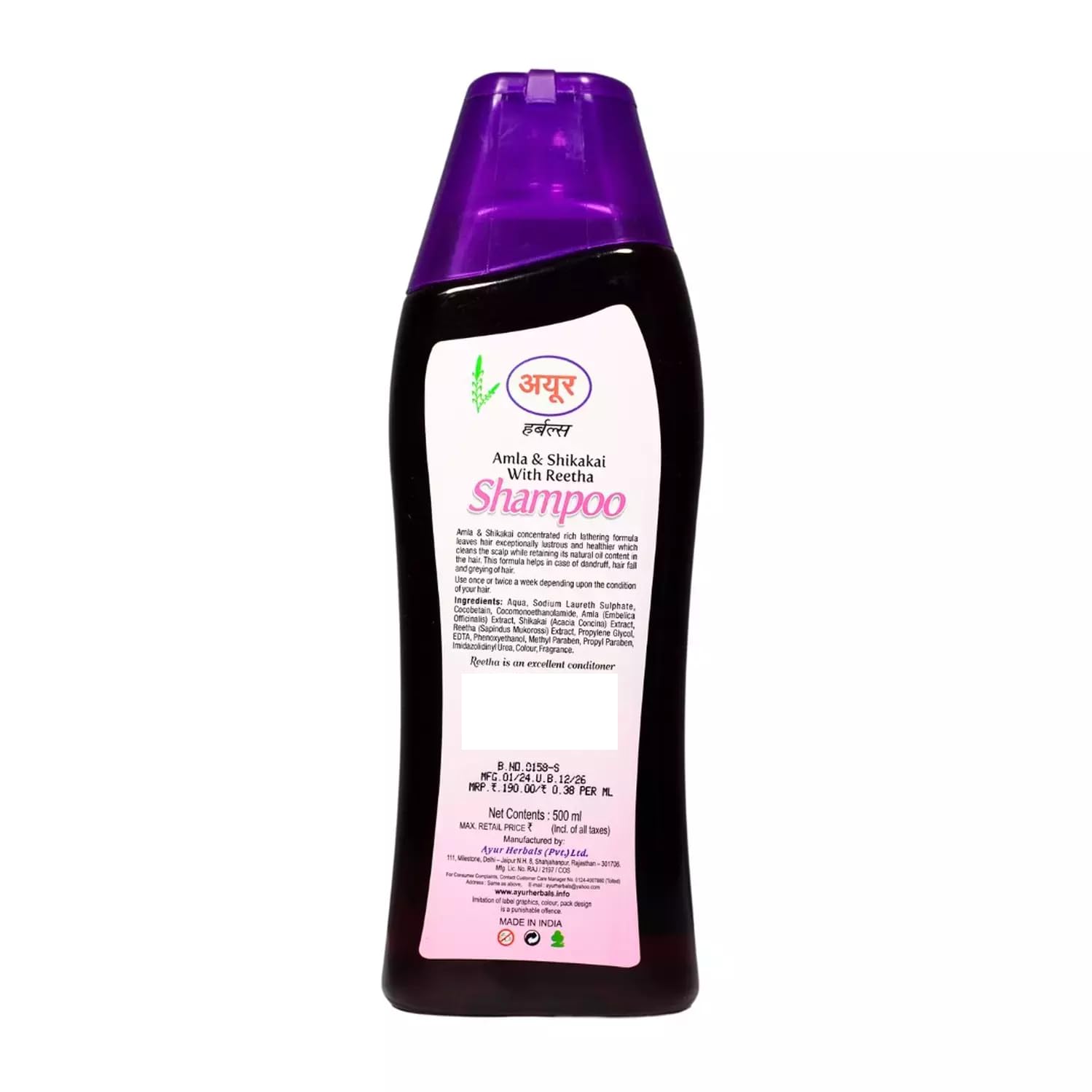AYUR SHAMPOO AMLA SHIKAKAI REETHA 500ML