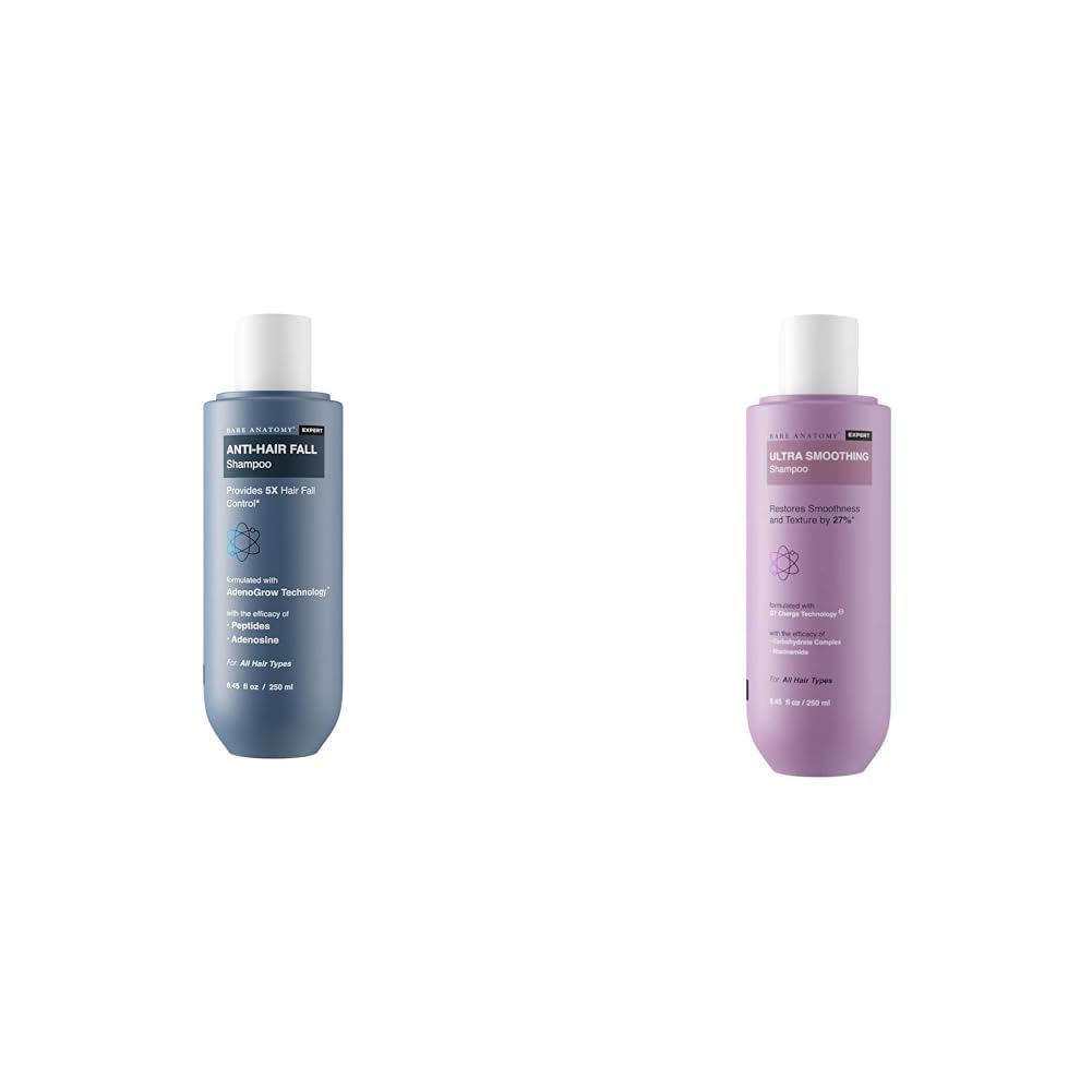 Bare Anatomy Anti Hair Fall Shampoo|5x Hair Fall Control & Growth - 250ml and Bare Anatomy Ultra Smoothing Shampoo for Dry and Frizzy Hair | For Men & Women -250ml
