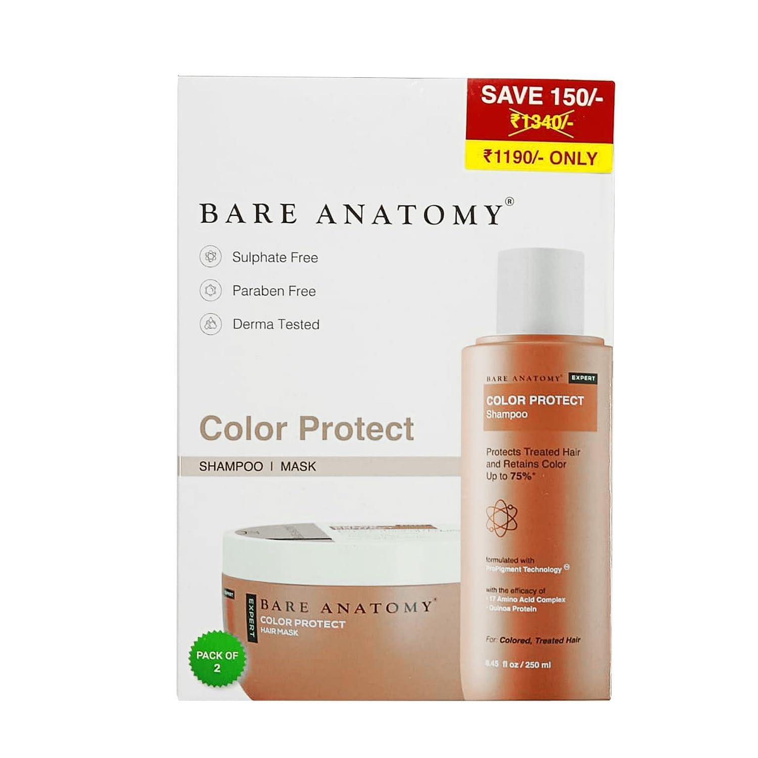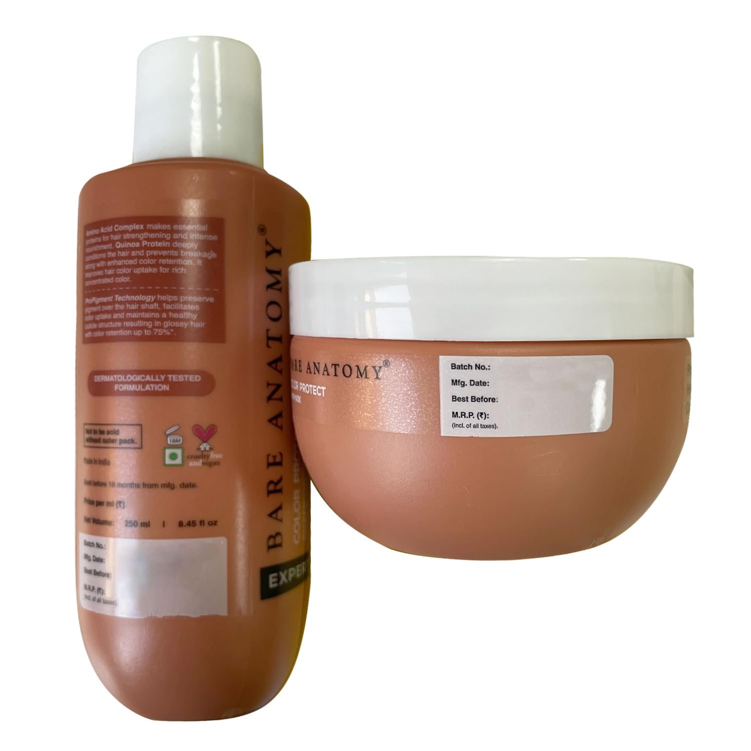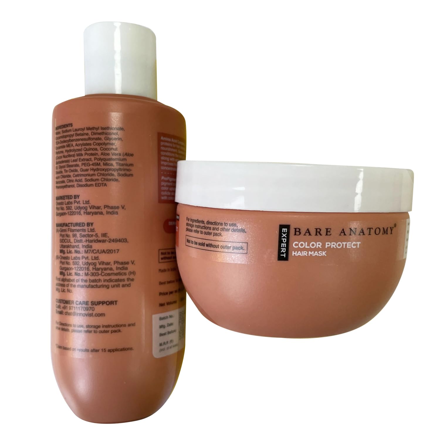 Bare Anatomy Color Protect Shampoo + Hair Mask Kit for Coloured and Treated Hair | Provides 8 Weeks of Protection Contains 17 Amino Acid Complex & Quinoa Protein For Dry & Frizzy Hair 250ml + 250g