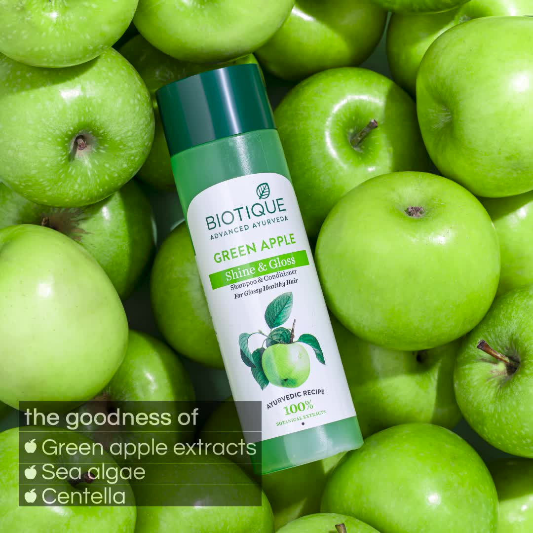 Biotique hair care frequent use cleanser for oily hair green apple is a refreshing cleanser formulated for frequent use. Biotique green apple shampoo contains apple extract along with sea algae and centella. Green apples have been natures health fruit since the beginning of time. Therefore the usage of shampoo every day does not effect pH balance of the hairs. It also nourishes the scalp with natural minerals and proteins and cures scalp problems.