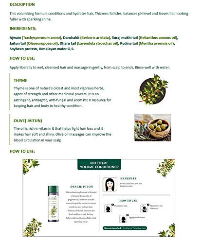 Biotique Thyme Volume Conditioner For Fine And Thinning Hair | Gives Volume And Bounce To Hair | Helps In Thicken Follicles |Suitable For All Skin Types | 180Ml, Peppermint, 180 Millilitre