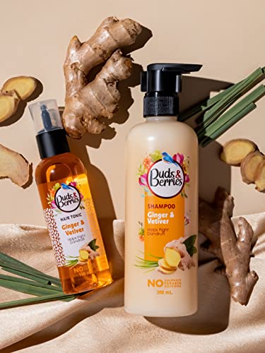 Welcome to the world of Garden inspired Beauty care with Buds and . Buds & Berries Ginger & Vetiver Anti-Dandruff Shampoo to Treat Scalp Irritation and Dandruff Flakes | NO Sulphate NO Paraben Enriched with the power of Ginger and Vetiver extracts the rich creamy shampoo helps fight dandruff while mildly cleansing & removing sebum from the scalp to yield stronger & conditioned hair. Buds & Berries Ginger & Vetiver Anti-Dandruff Hair Tonic to Treat Scalp Irritation and Dandruff Flakes | NO Sulphate NO Paraben Enriched with the power of Ginger & vetiver extracts this light hair tonic gets quickly absorbed in hair and scalp to fight against dandruff strengthens hair and works make hair smooth strong and manageable.